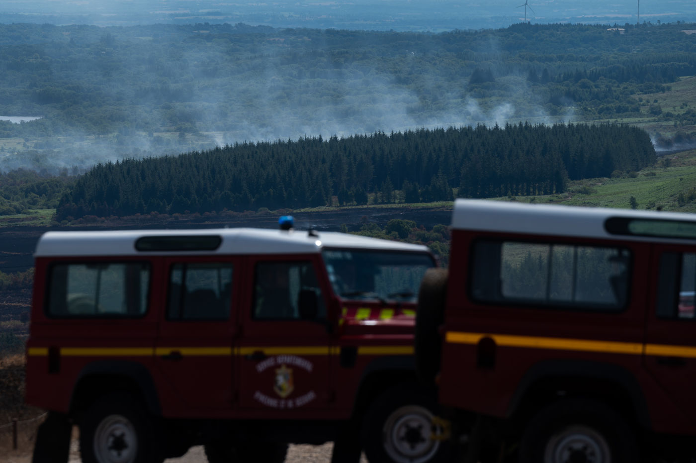 After the fires that destroyed more than 1,700 hectares in the Monts d'Arrée massif in Finistère, the firemen continue to monitor the area. Fires have been observed to reignite and these have required the dropping of retardant by a Dash bomber aircraft.