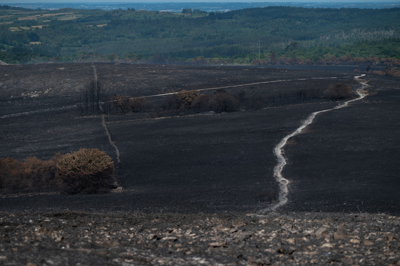 Après les incendies qui ont détruit plus 1.700 hectares dans le massif des Monts d'Arrée dans le Finistère, les pompiers continuent à surveiller la zone. Des reprises de feu ont été observées et ces dernières ont nécessité le larguage de retardant par un avion bombardier Dash.