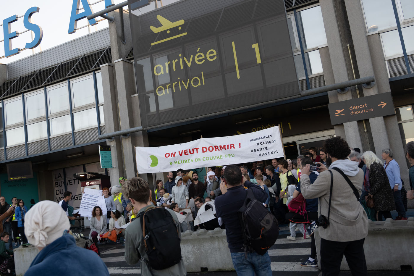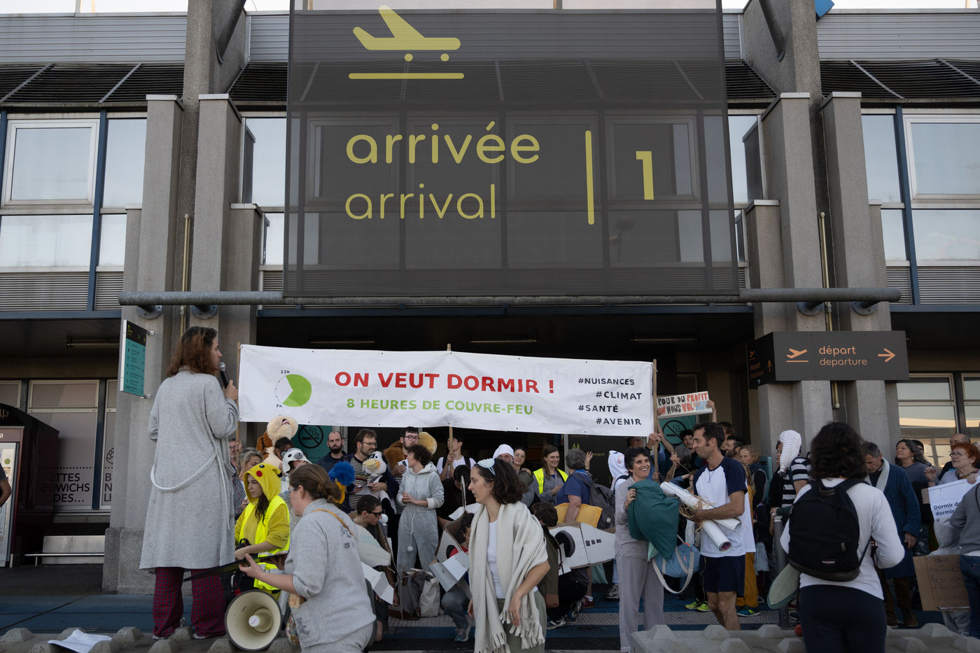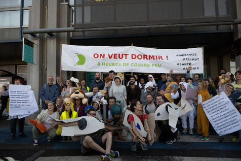 A hundred people dressed in pajamas took part in an action in the terminal of Nantes-Atlantique Airport aimed at demanding respect for the curfew introduced on night flights prohibited from midnight to 6 a.m. or even its extension from 11 p.m. to 7 a.m. The environmental associations Alternatiba and GIGNV, organizers of this happening, also pointed out the impact of air traffic on the environment and health.