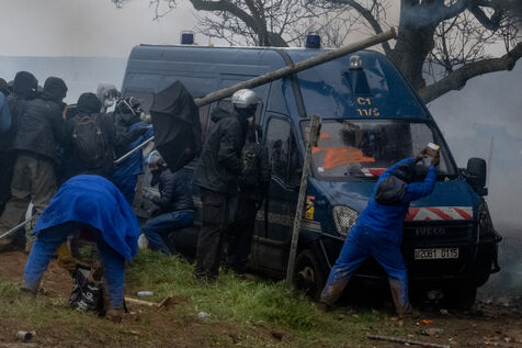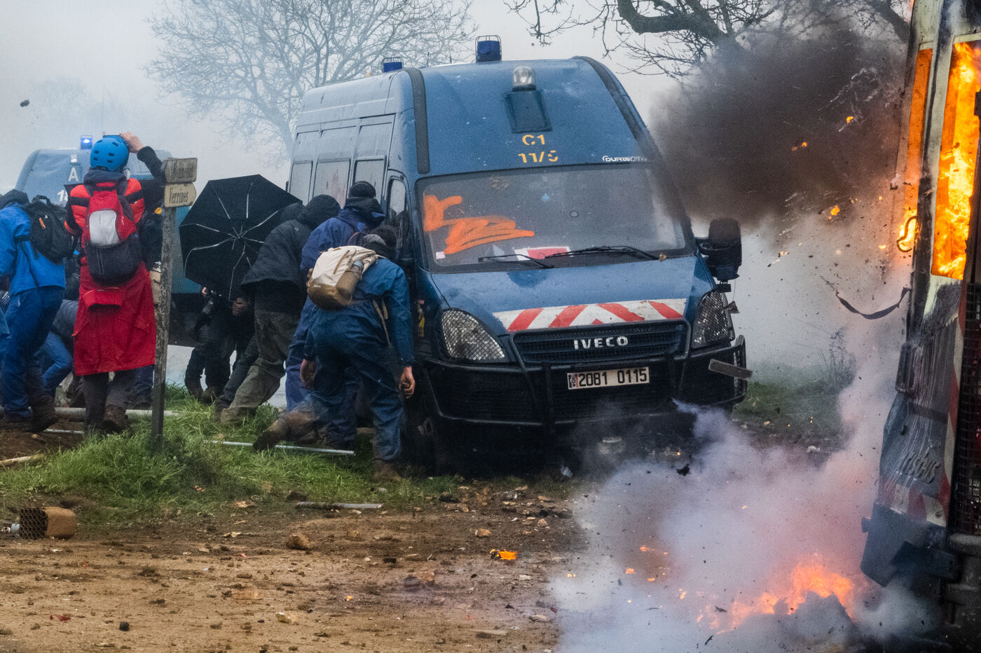 Violent clashes broke out near the Sainte-Soline basin construction site. 4 police vehicles were set on fire, and many people were injured, including 5 in absolute emergency (3 demonstrators, 2 gendarmes).