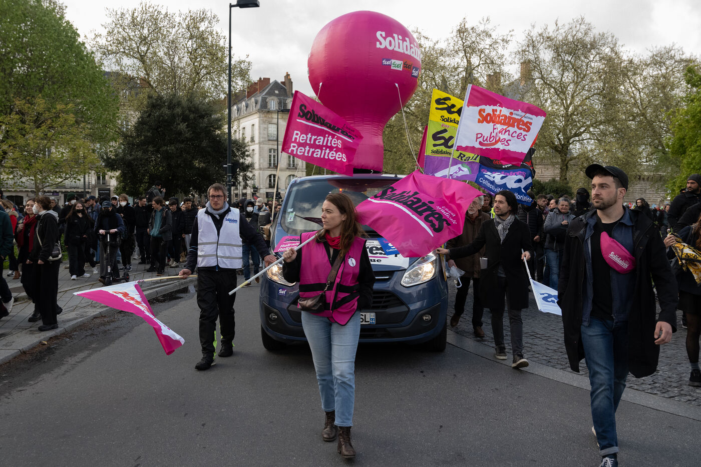 The interunion had called for a demonstration in Nantes on the occasion of the decisions of the Constitutional Council regarding the pension reform. The Wise Men finally validated the main part of the text including the postponement of the legal retirement age to 64 years and invalidated the first request of Referendum of Shared Initiative (RIP) filed by left-wing deputies. Incidents occurred with the building of barricades, burning of garbage cans and throwing of projectiles at the police (including fireworks).