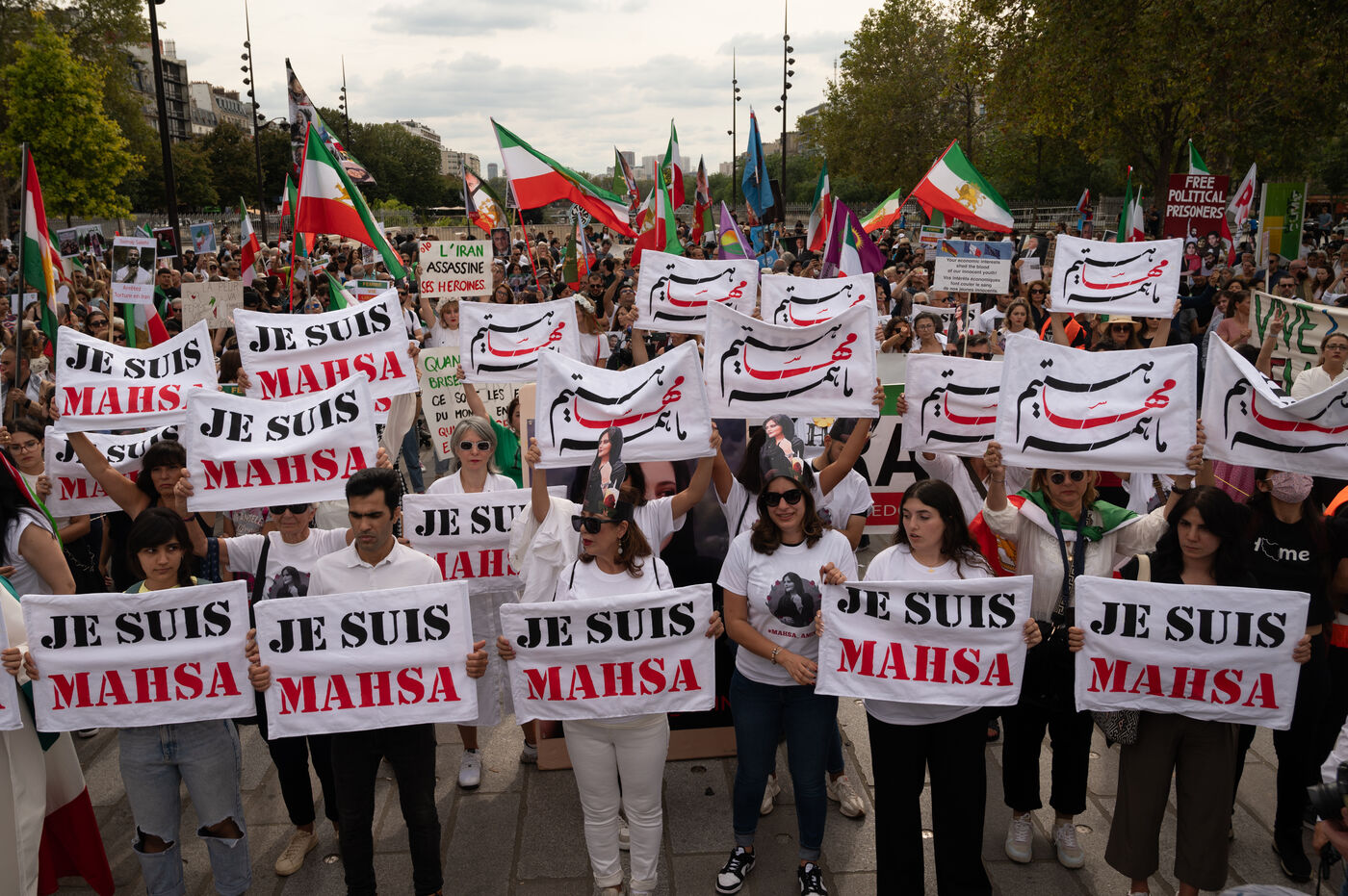 MANIFESTATION EN SOUTIEN AUX FEMMES IRANIENNES A PARIS UN AN APRES LA MORT DE MASHA AMINI