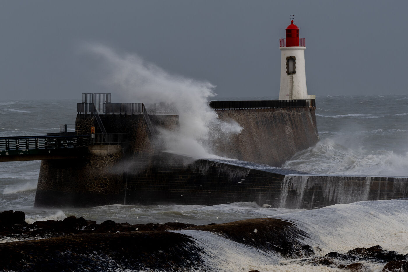 Two days after Ciaran, western France is hit again by a new storm named Domingos. Météo France forecasts that this new low will generate winds of up to 100km/h inland and 130km/h on the coast. Photo taken in Les Sables d'Olonne, Vendée (département under Orange vigilance)