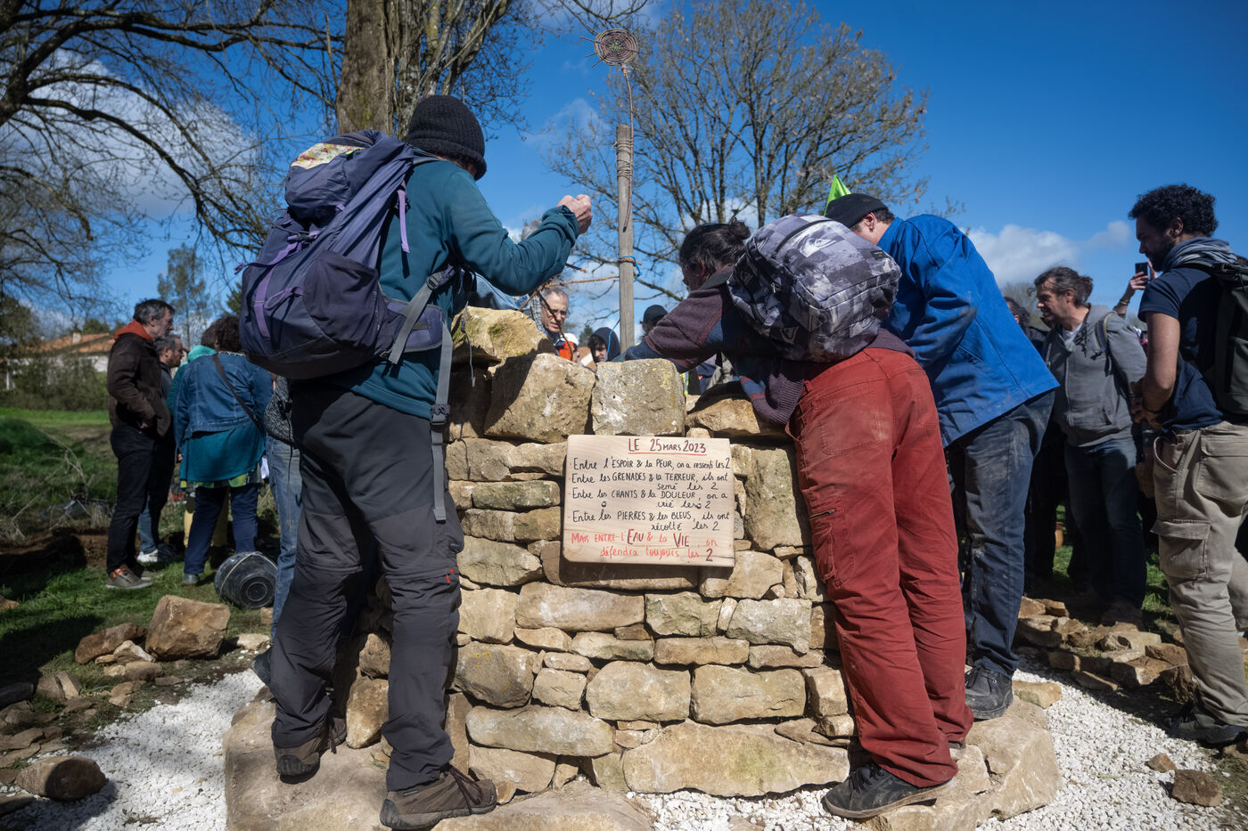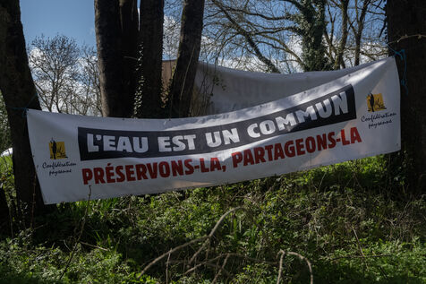 Hundreds of environmental activists gathered in Deux-Sèvres on March 23, 2024 at the call of the "Bassines non merci" collective and Soulevements de la Terre for a "Commemo'action" one year after a demonstration against mega-agricultural ponds in Sainte-Soline degenerated into violent clashes with the police, in which several participants were injured, some seriously.