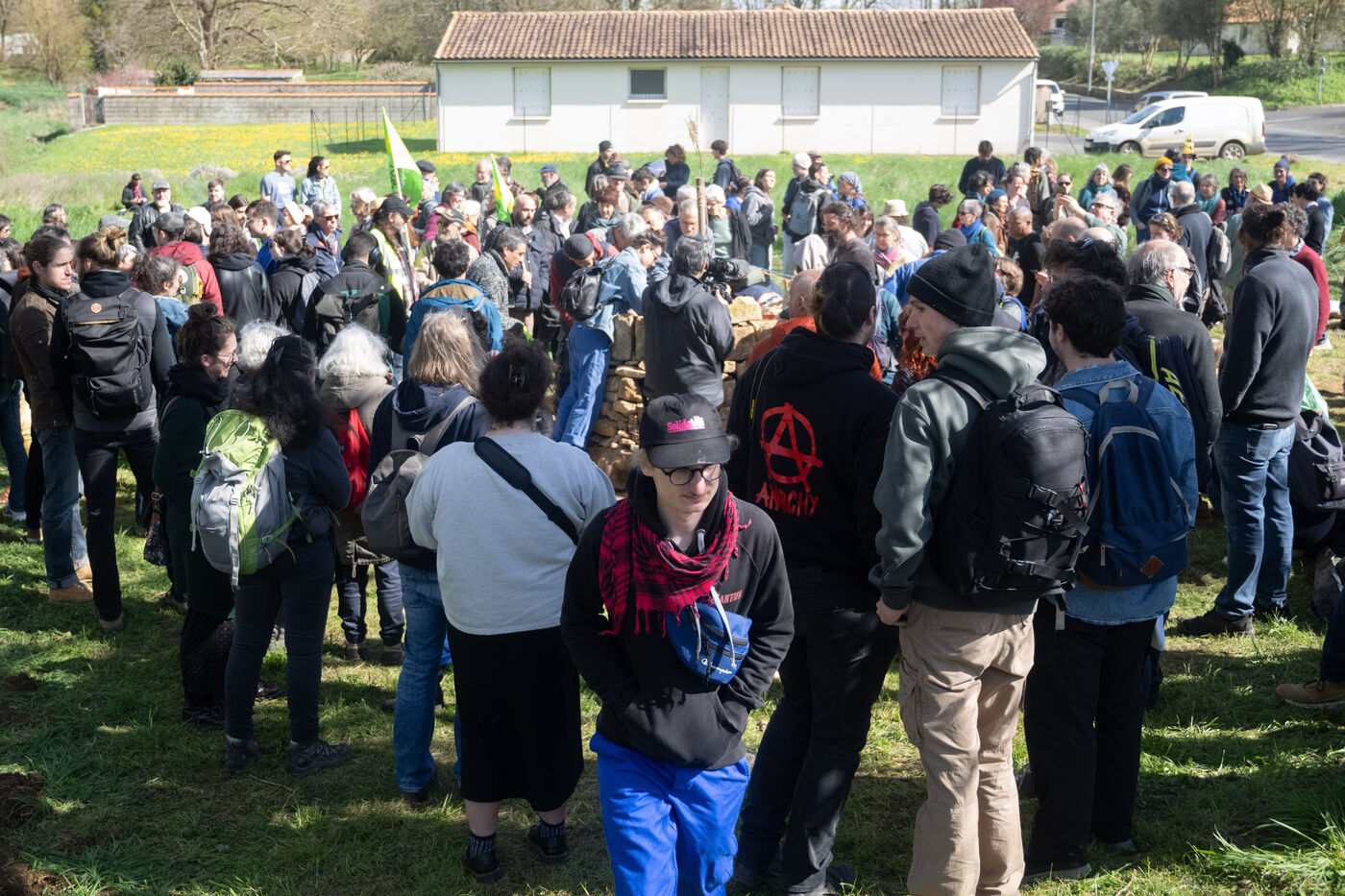 Des centaines de militants écologistes se sont rassemblés dans les Deux-Sèvres le 23 mars 2024 à l'appel du collectif "Bassines non merci" et des soulevements de la Terre pour une "Commemo'action" un an après la manifestation contre les méga-bassines agricoles à Sainte-Soline qui avait dégénérée en affrontements violents avec les forces de l'ordres et où plusieurs participants avaient été blessés pour certains grièvement.