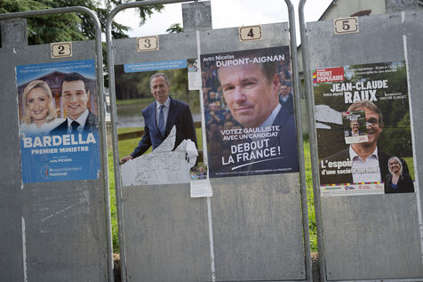 On Sunday 30 June 2024, the French are invited to vote for their MPs in the first round of the early legislative elections following Emmanuel Macron's dissolution of the National Assembly. According to the latest polls, the Rassemblement National is in the lead ahead of the left coalition formed by the Nouveau Front Populaire, while the Majorité Présidentielle list is in third place. Photo taken at a polling station in Riallé (Loire-Atlantique, France).