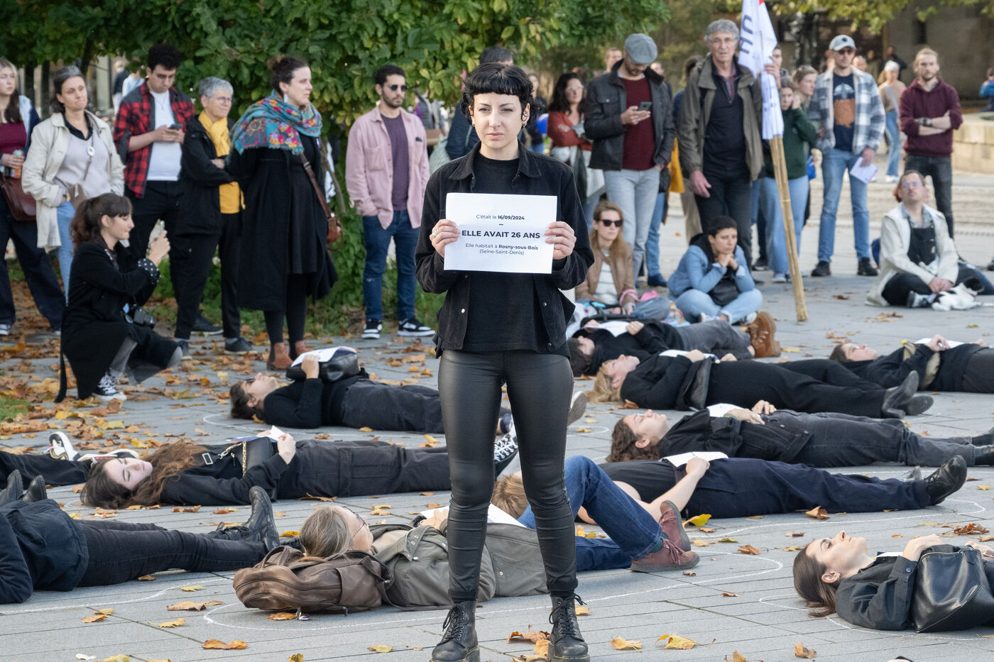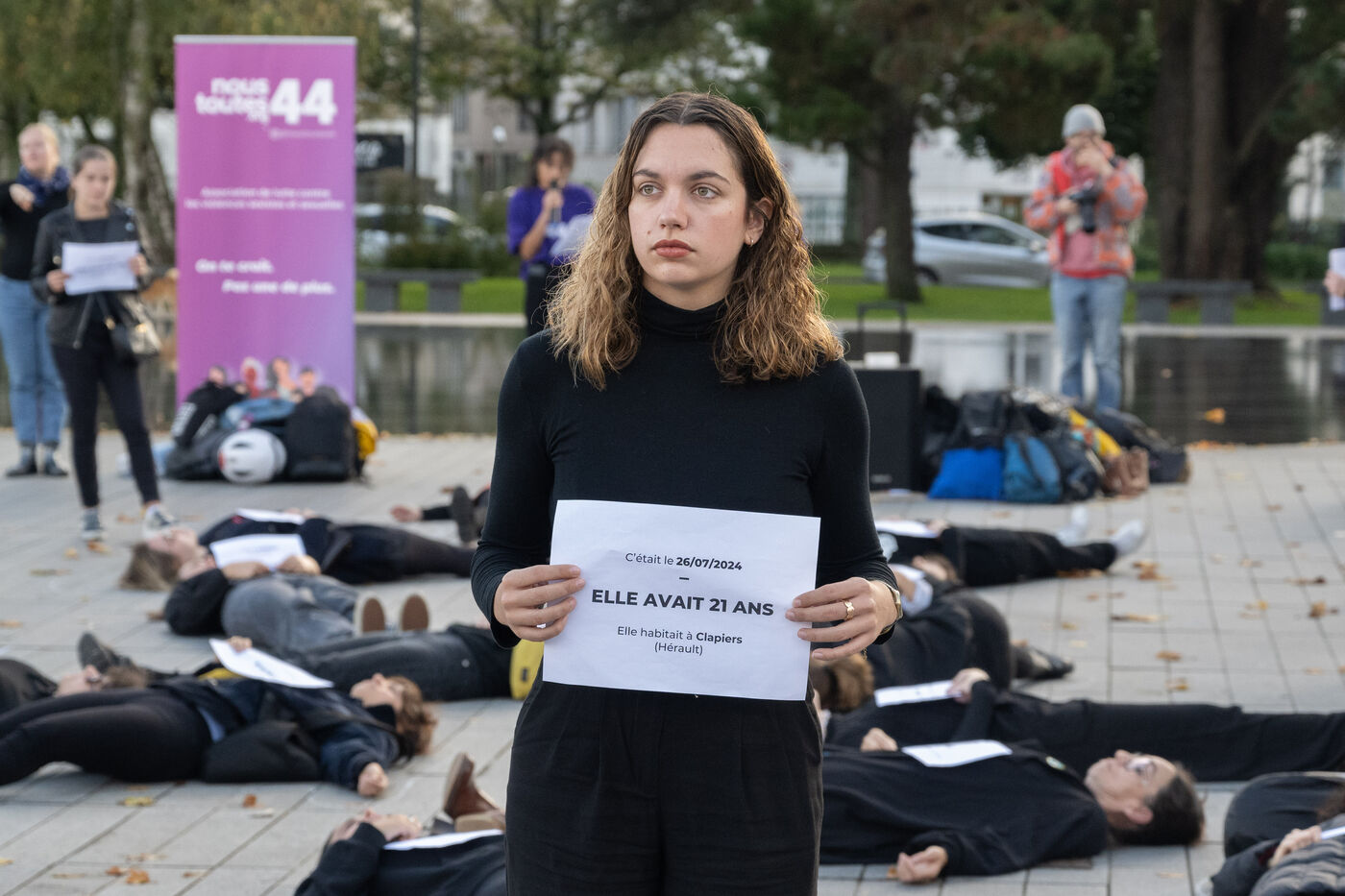 The feminist collective Nous Toutes de Loire-Atlantique organized a happening in the form of a die-in on Saturday, October 19, 2024 in Nantes (France) to pay tribute to the women who have been victims of feminicide since the start of the year.