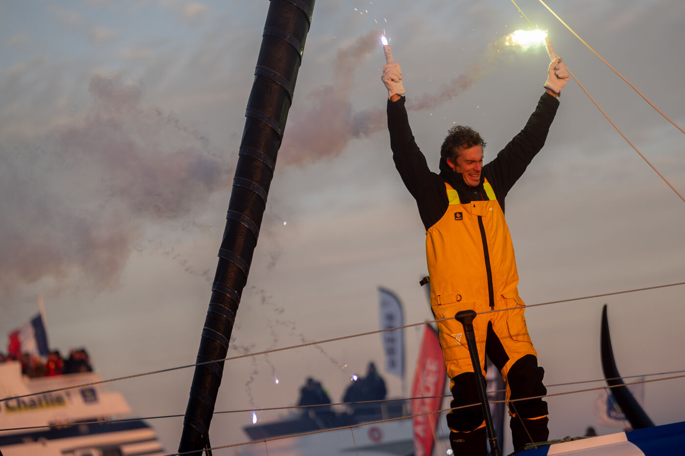 Skipper Charlie Dalin (Imoca Macif Santé Prévoyance) won the Vendée Globe 2024, crossing the finish line in Les Sables d'Olonne (France) on January 14, 2025 after sailing around the world single-handed and unassisted in 65 days.
