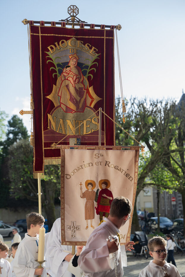 Monsignor Percerou, Bishop of Nantes (France), celebrated mass in the Basilica of Saint-Donatien on Wednesday 23 April 2025 to commemorate the pontificate of Pope Francis (Jorge Bergoglio), who died in the Vatican on 21 April 2025. Many faithful attended the service to pay their last respects to the pontiff, who died at the age of 88.