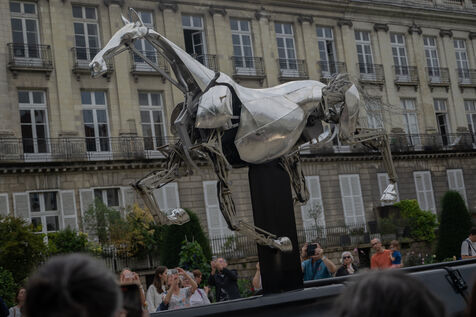 De nombreux nantais sont venus admirer Zeus, le cheval métallique qui a parcouru la Seine durant la cérémonie d'ouverture des Jeux Olympiques de Paris 2024. La sculpture est exposée du 19 au 28 septembre 2025 cours Cambronne à Nantes où elle a d'ailleurs été conçue par l'atelier Blam.