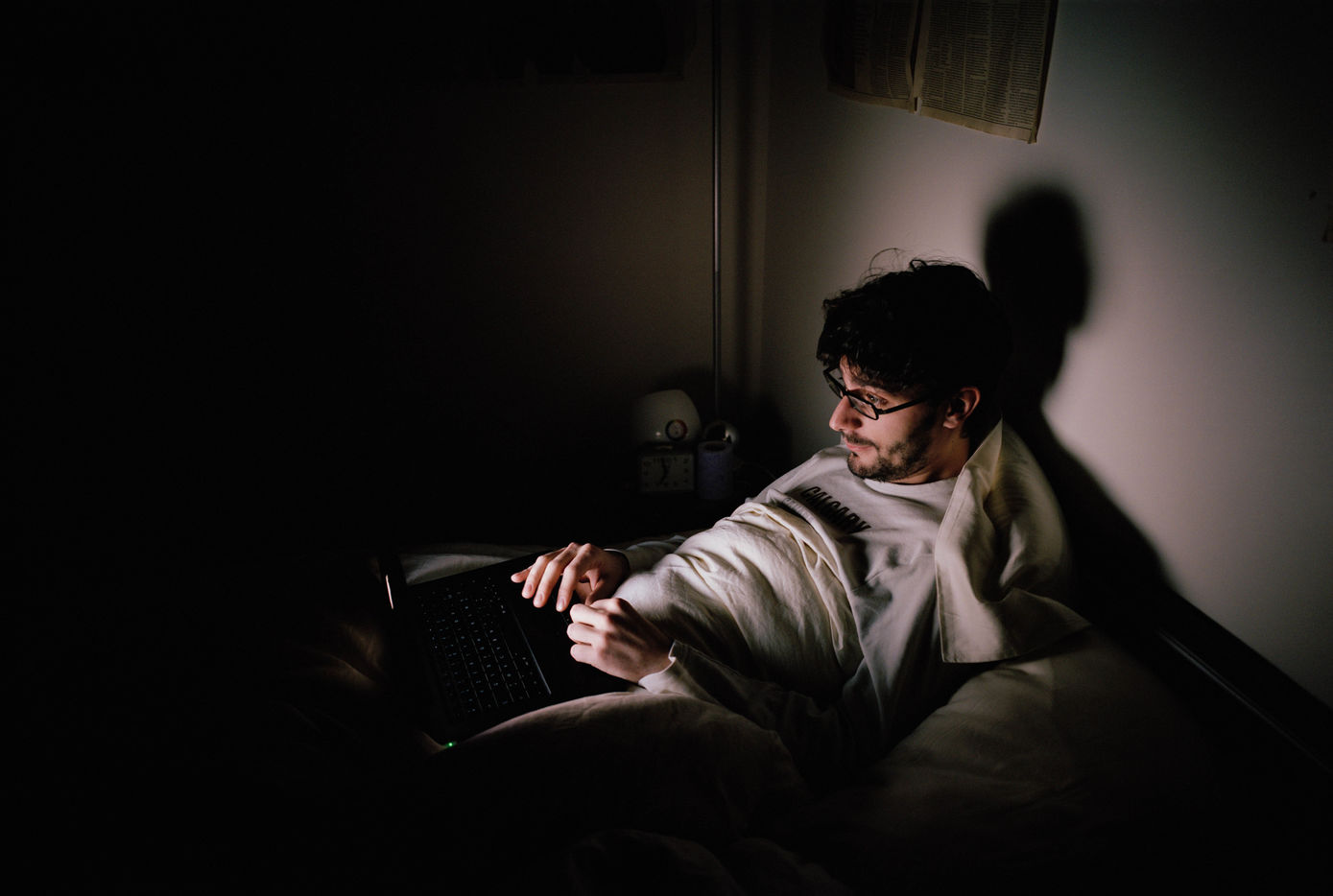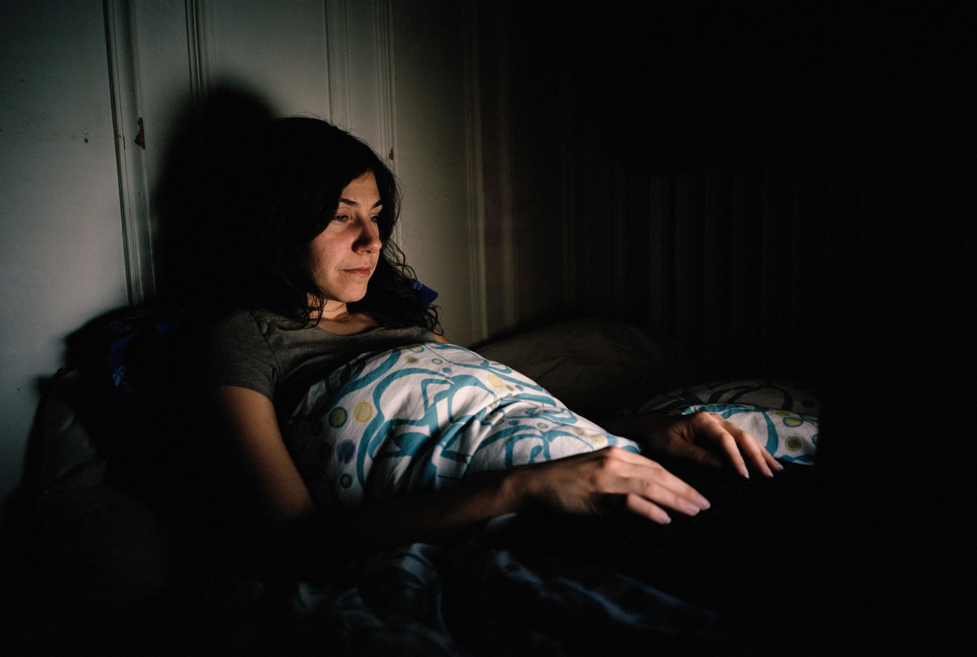 Fascinée par les thématiques de la ville et de la nuit, elle pousse les portes des habitats parisiens. Quand la ville s'endort, l'individu s'adonne au silence et à la froideur des activités nocturnes. A l'image de son écran, partenaire d'insomnies, il se met en Veille. Des images lentes, intimes, presque immobiles, portées par une réflexion sur notre monde contemporain.