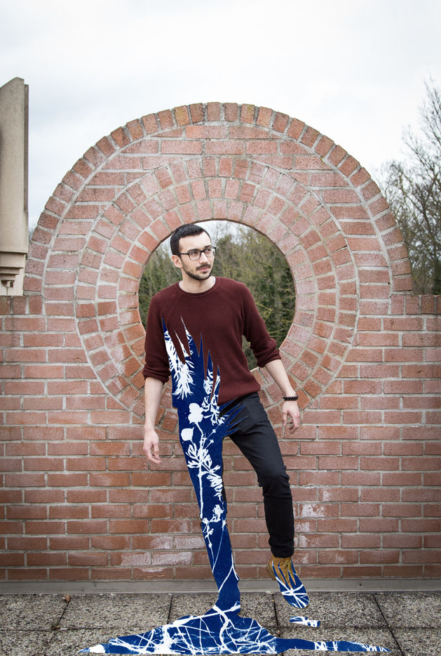 Projet inspiré des traces que laisse la foudre sur la peau ou sur d'autres matériaux lorsqu'elle les frappe. Ces traces sont comme des rhizomes et se rapprochent de formes végétales. Les étudiants ou personnels rencontrés ont eu pour consigne générale de poser à deux devant l'objectif et de rentrer en contact l'un avec l'autre, en se prenant la main par exemple ou en adoptant une posture particulière, afin que le cyanotype vienne, comme une métaphore du lien qui les relie, contaminer les deux corps. Ils ont ensuite pu découper leur image et disposer dans les trouées des végétaux récoltés sur les lieux sur un papier enduit de cyanotype. Enfin, après avoir exposé ce dernier à la lumière noire dans la cabine construite à cet effet (dans le hall de l'IUT), ils ont pu repartir avec leur figure de Lichtenberg.