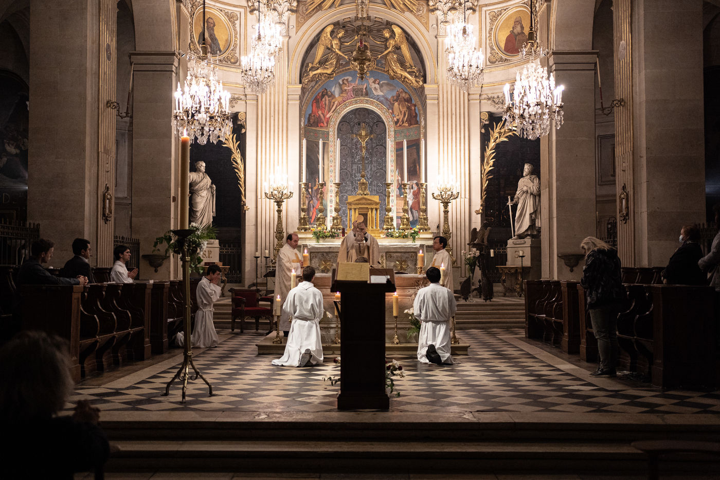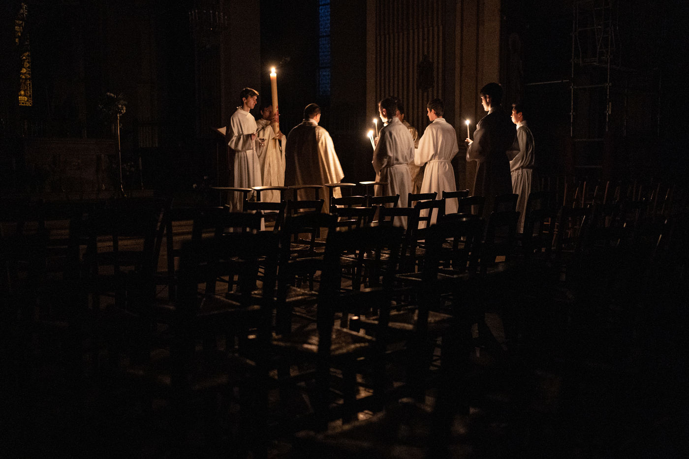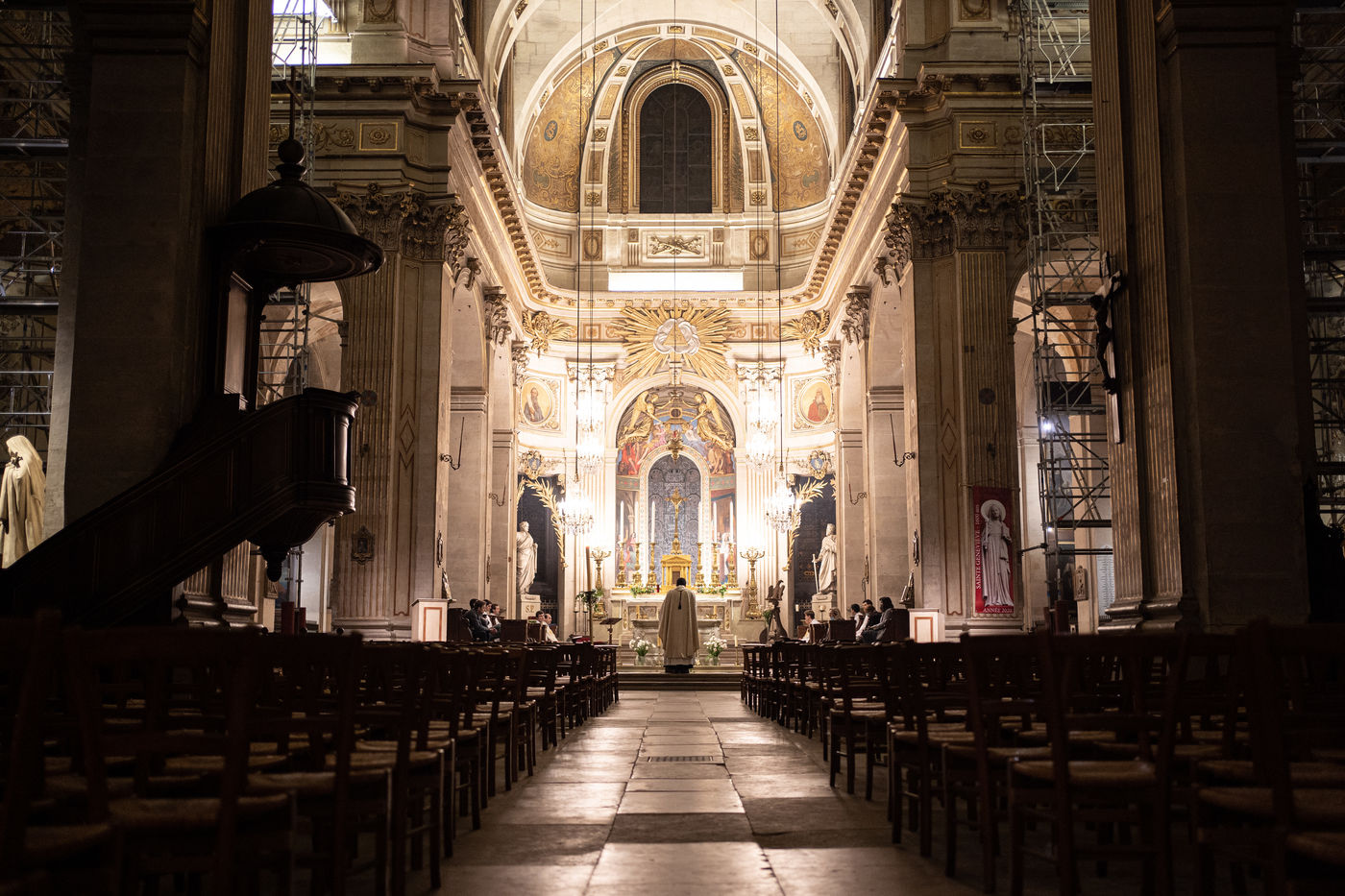 L'Église Saint-Louis en l'Île célèbre la Veillée Pascale, malgré l'impossibilité d'accueillir ses paroissiens.
