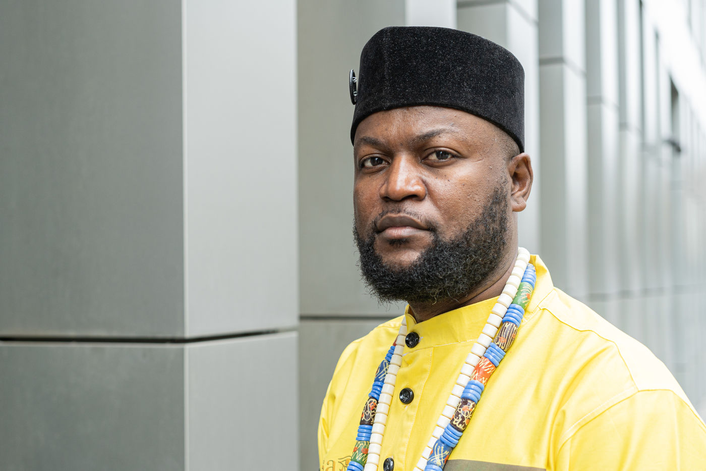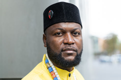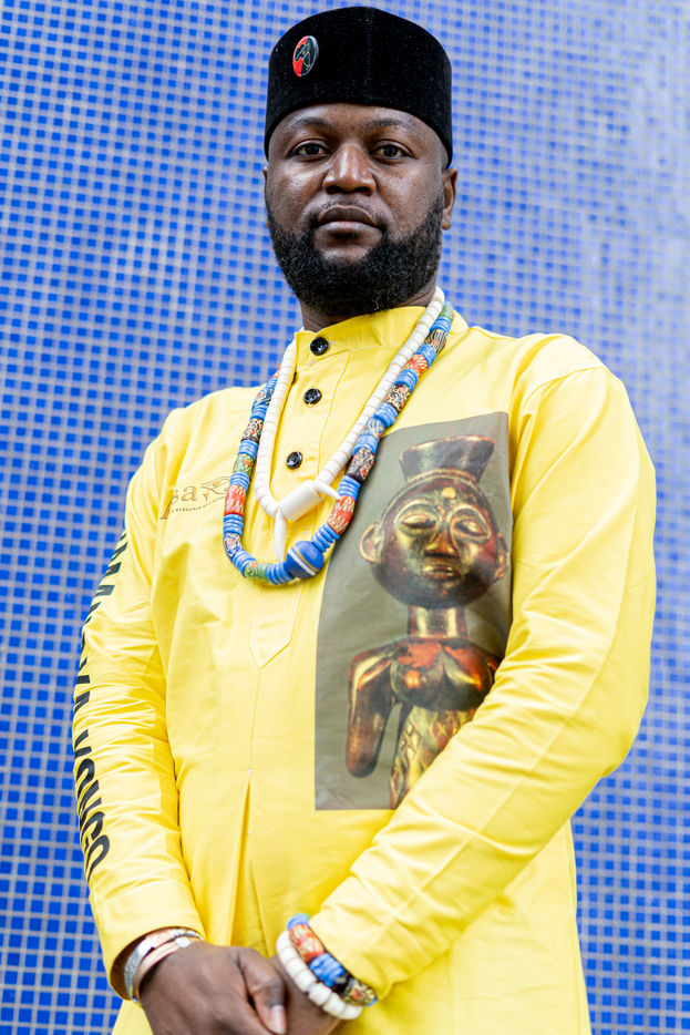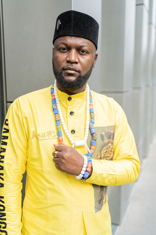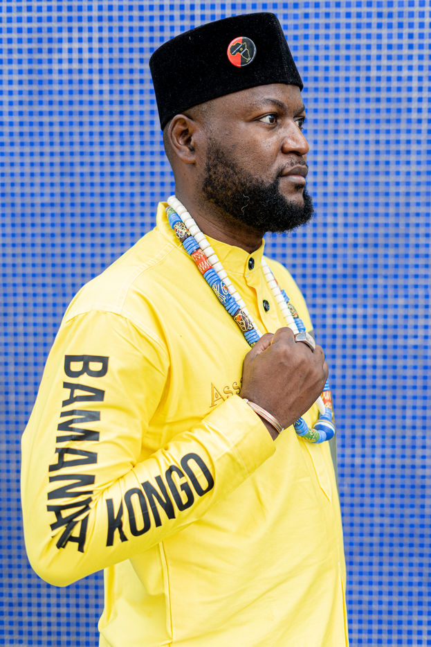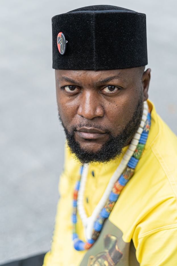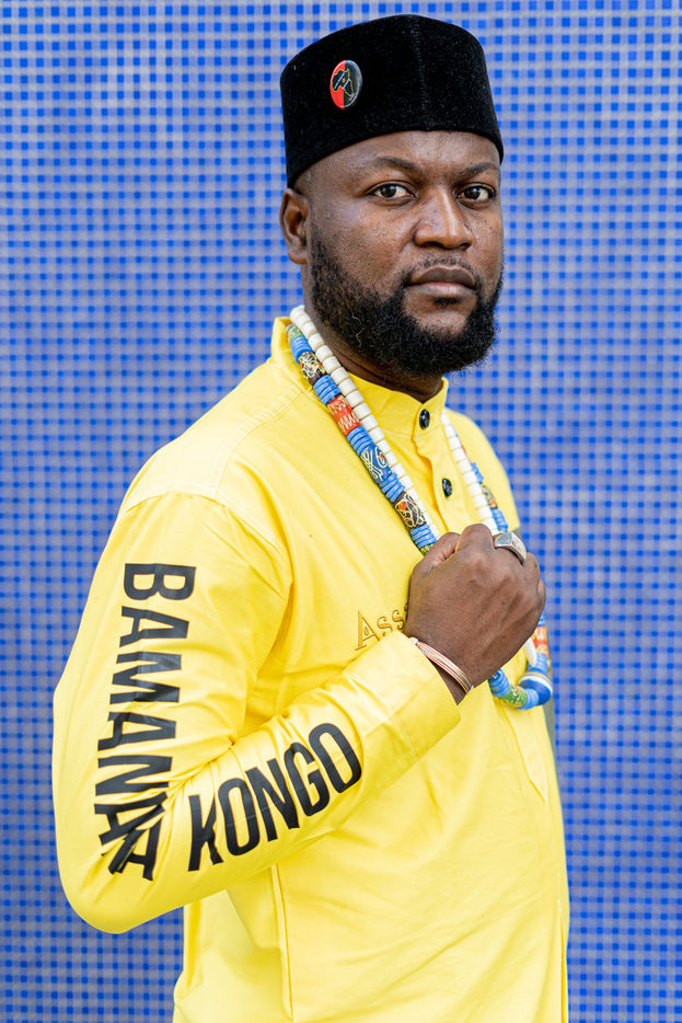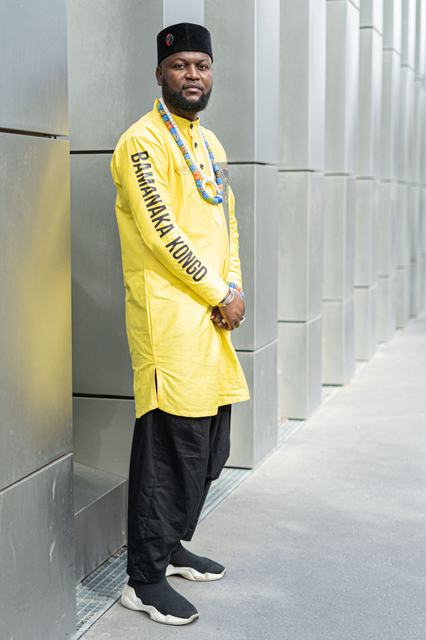 Portraits de Mwazulu Diyabanza à Paris. Cet activiste congolais est jugé à Paris pour avoir dérobé un poteau funeraire tchadien au musée du Quai-Branly. Il entend ainsi protester contre l accaparement par les pays occidentaux de biens culturels africains. Il a conduit des actions similaires à Marseille et à Berg en Dal aux Pays-Bas.