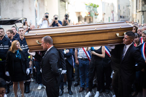 Les obsèques de Jean-Mathieu Michel, maire de Signes, mort dans l'exercice de ses fonctions le 09/08/2019.