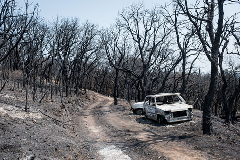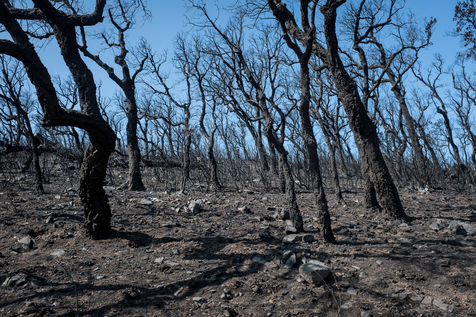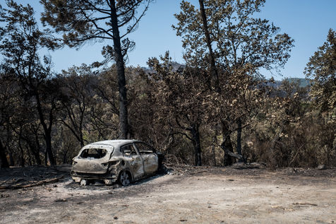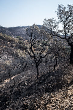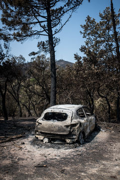 Report after the passage of the Gonfaron forest fire which burned nearly 7,000 hectares and caused two deaths in Val De Gilly (Grimaud 83).