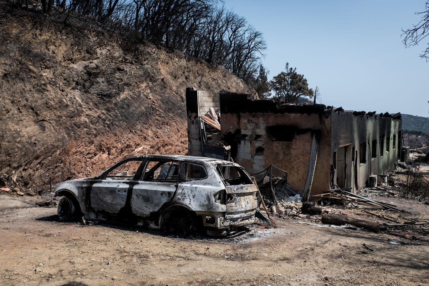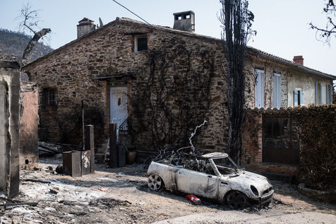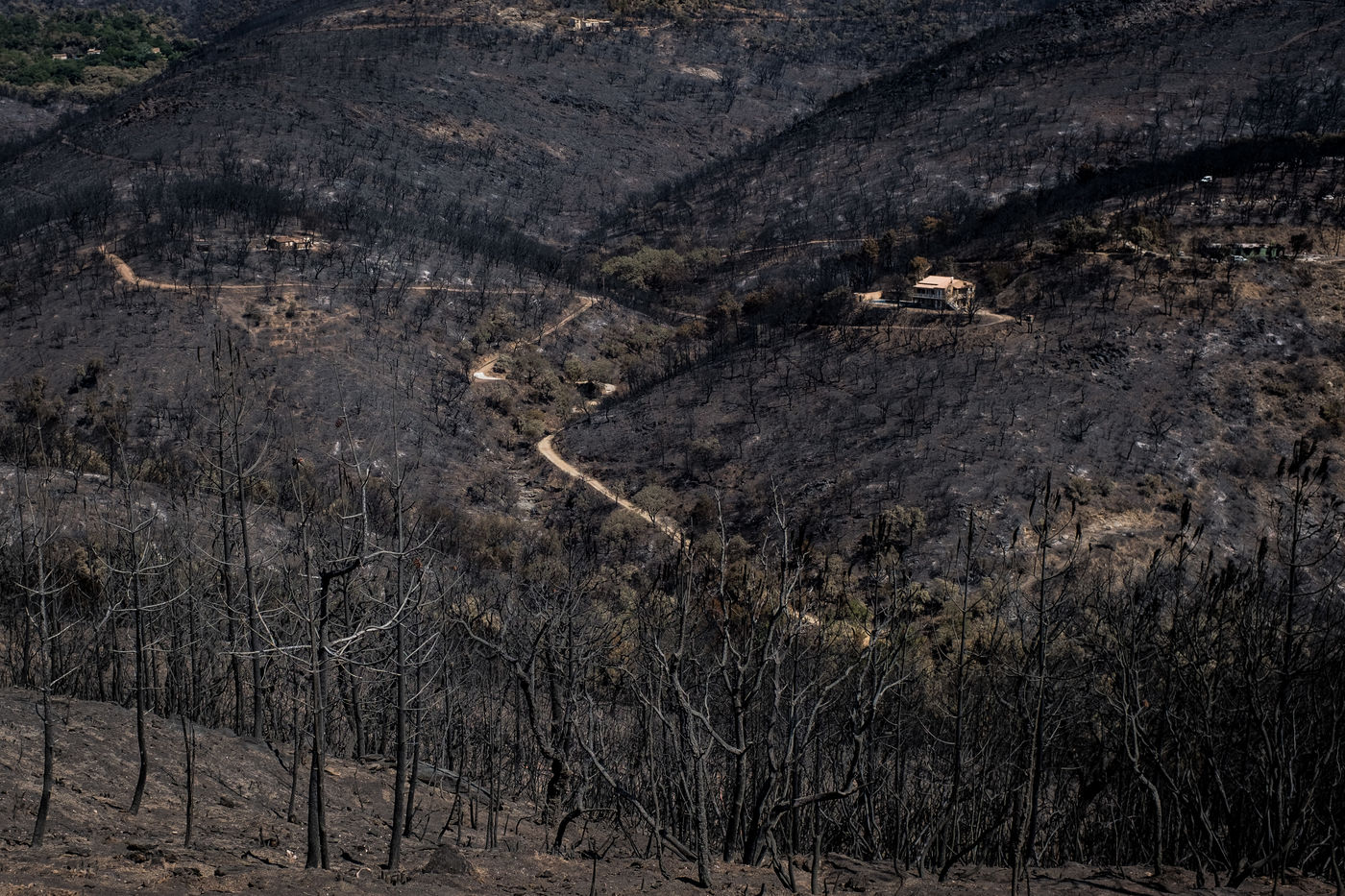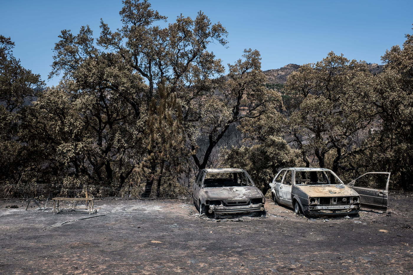 Reportage après le passage du feu de foret de Gonfaron qui a brulé près de 7000 hectares et causé deux morts au Val De Gilly (Grimaud 83).