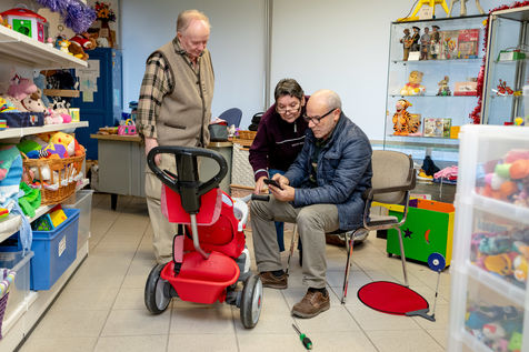 Work of the volunteers in the Emmaus association of Blois. Recovery, sorting, repair, recovery, recycling and sale of objects donated by individuals.