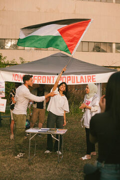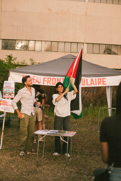 Entourée de drapeaux palestiniens et de citoyens engagés, Rima Hassan a exprimé sa solidarité envers le peuple palestinien, soulignant son engagement pour la justice sociale et les droits humains.