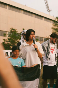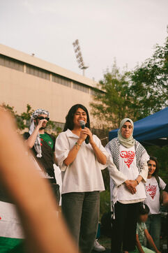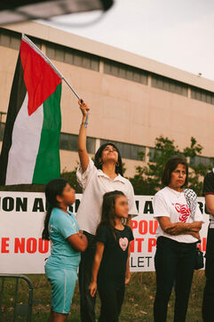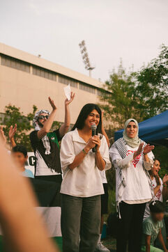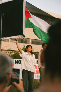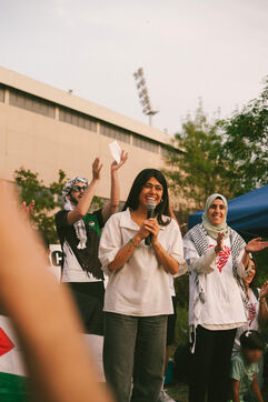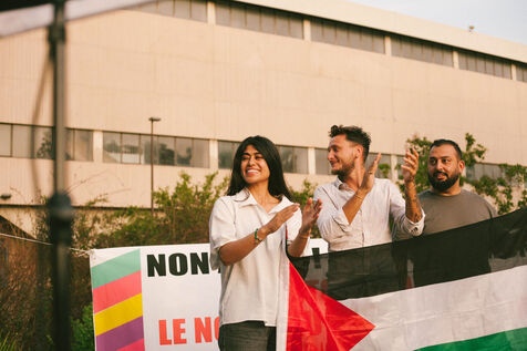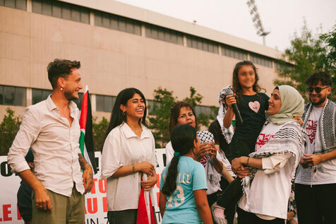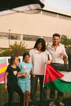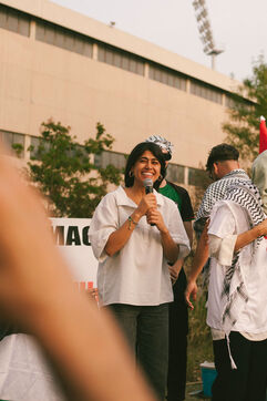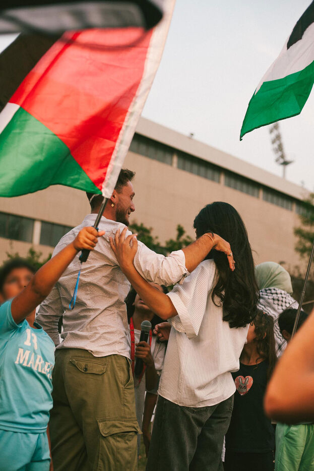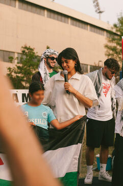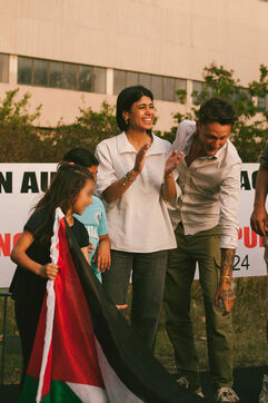 Surrounded by Palestinian flags and engaged citizens Rima Hassan expressed her solidarity with the Palestinian people emphasizing her commitment to social justice and human rights