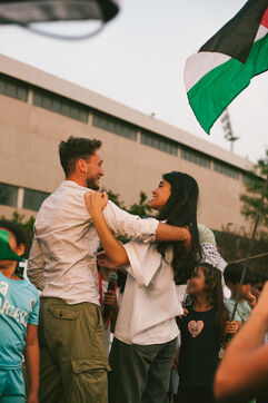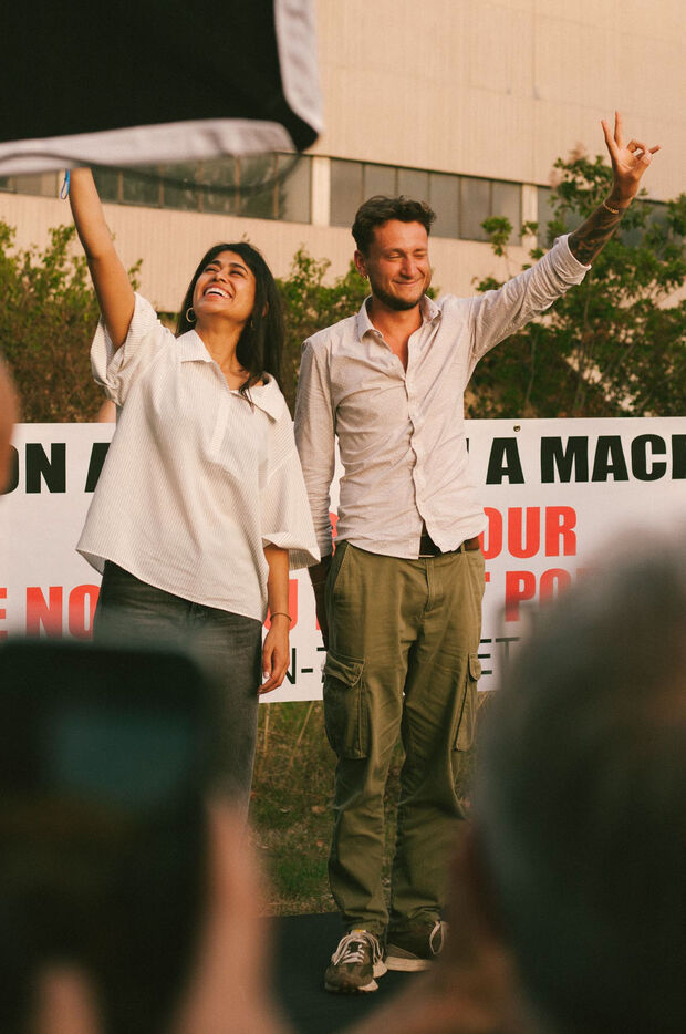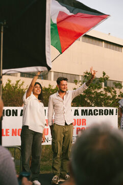 Rima Hassan supporting Palestine and Raphaël Arnault