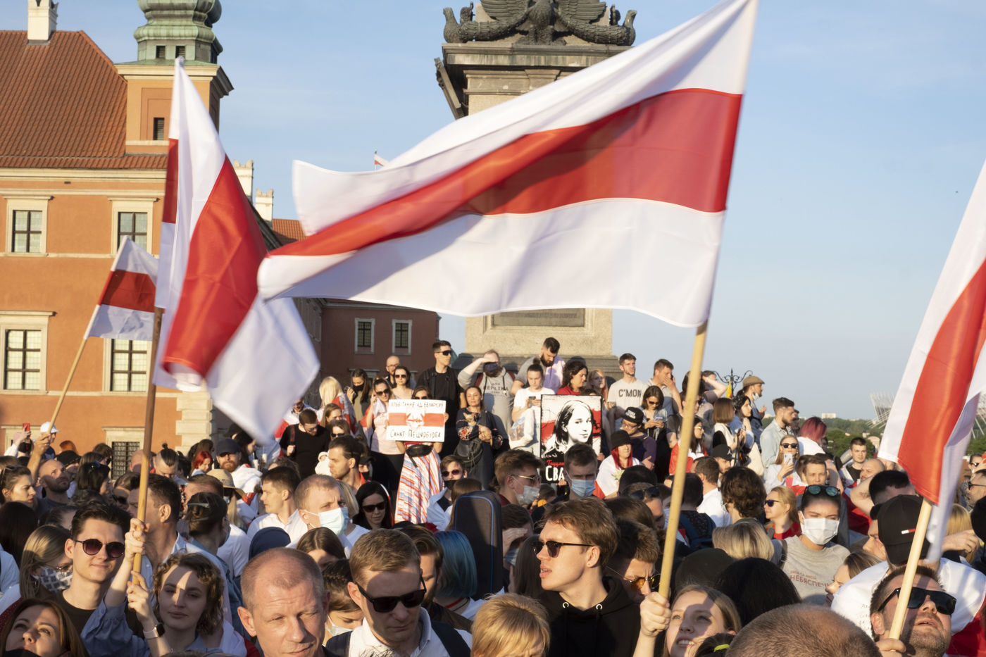 A Varsovie, des centaines de biélorusses se sont réunis pour acclamer Svetlana Tikhanovskaïa, en exil, depuis les éléctions discutables du 9 août 2020.