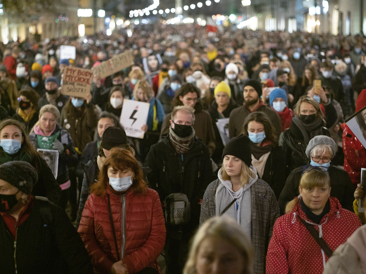 In Silesia, doctors waited for a fetus to die in accordance with the recent abortion law. The mother subsequently died. Thousands of Poles gathered in a march in her memory and to denounce the anti-abortion law.