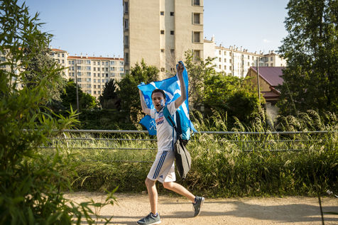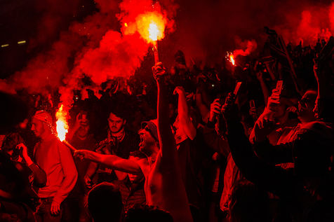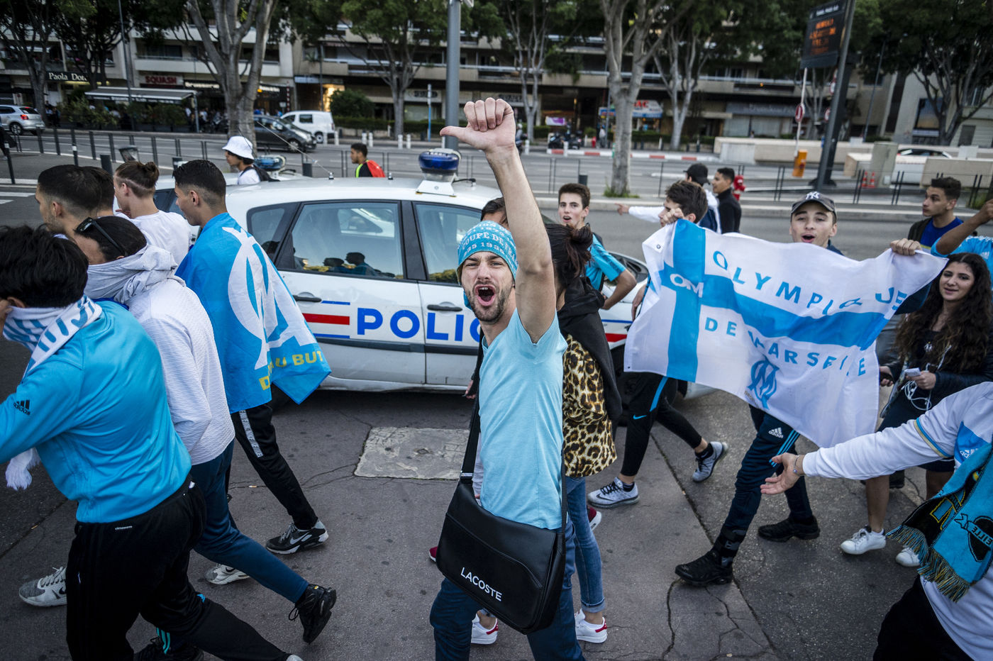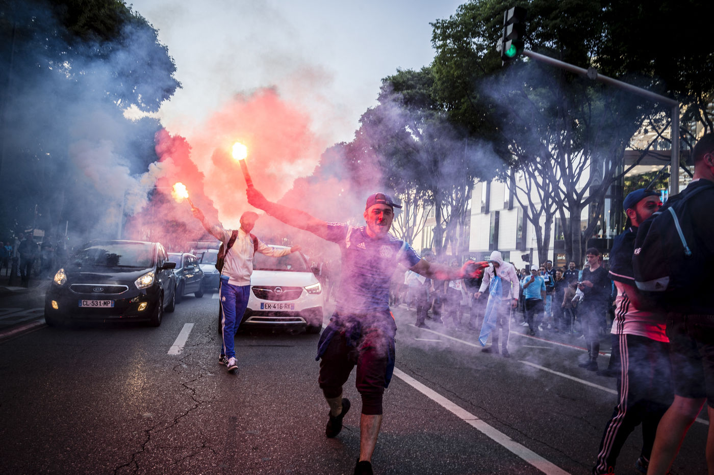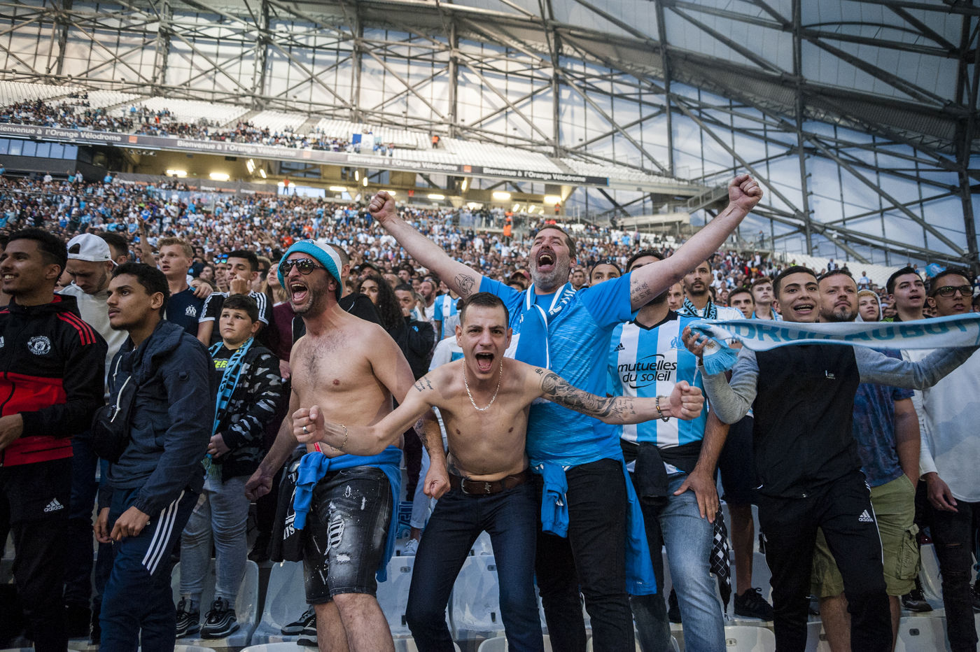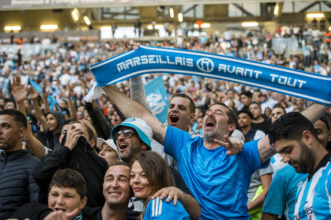 Report on the broadcast, at the Velodrome stadium, of the final of the Europa League between Olympique de Marseille and Athletico de Madrid. The Match was broadcast on a giant screen, which was installed in the middle of the pitch of the Vélodrome stadium in Marseille. More than 5000 free seats were distributed to allow the many supporters to support their team in their usual stands. 15 May 2018