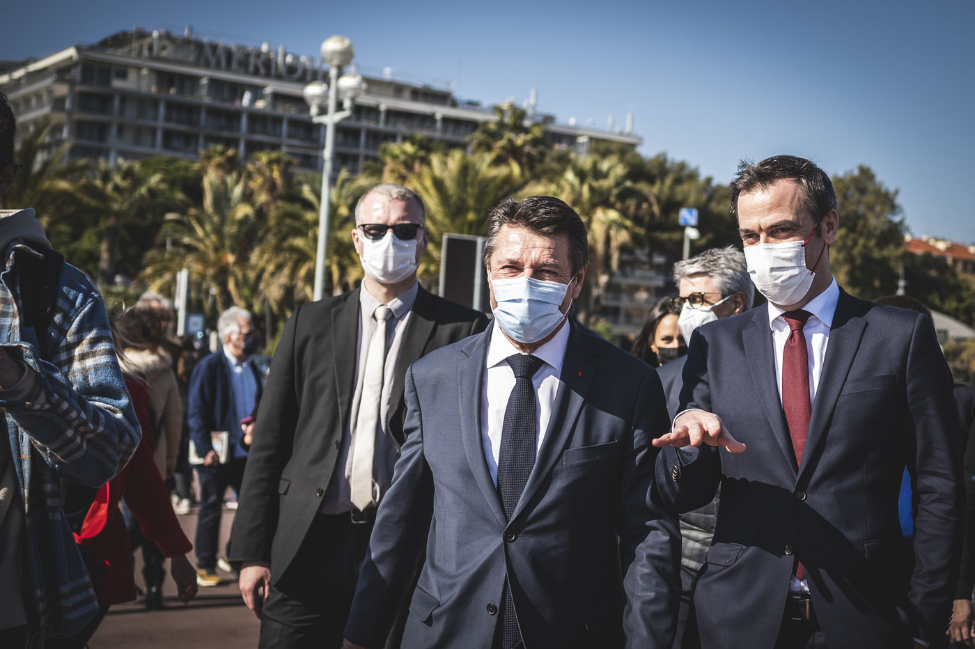 Dans le cadre de la degradation de la situation de l'épidemie à Nice, avec un taux d'incidence le plus élevé du pays, le ministre de la santé, Olivier Veran est venu en visite à Nice, accompagné par Christian Estrosi. Ils ont visité ensemble un centre de vaccination contre la Covid 19.