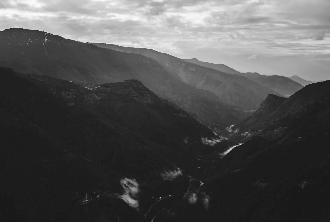 Serie en noir et blanc de paysage embrumés des montagnes de l'arriere pays Nicois.