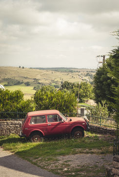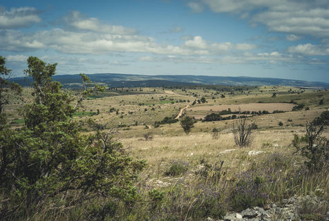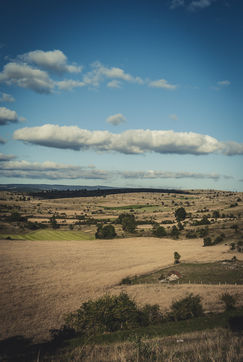Images d'illustrations montrant des paysages du village de Sauveterre au coeur du departement de la Lozère dans la region Occitanie. Aout 2021.