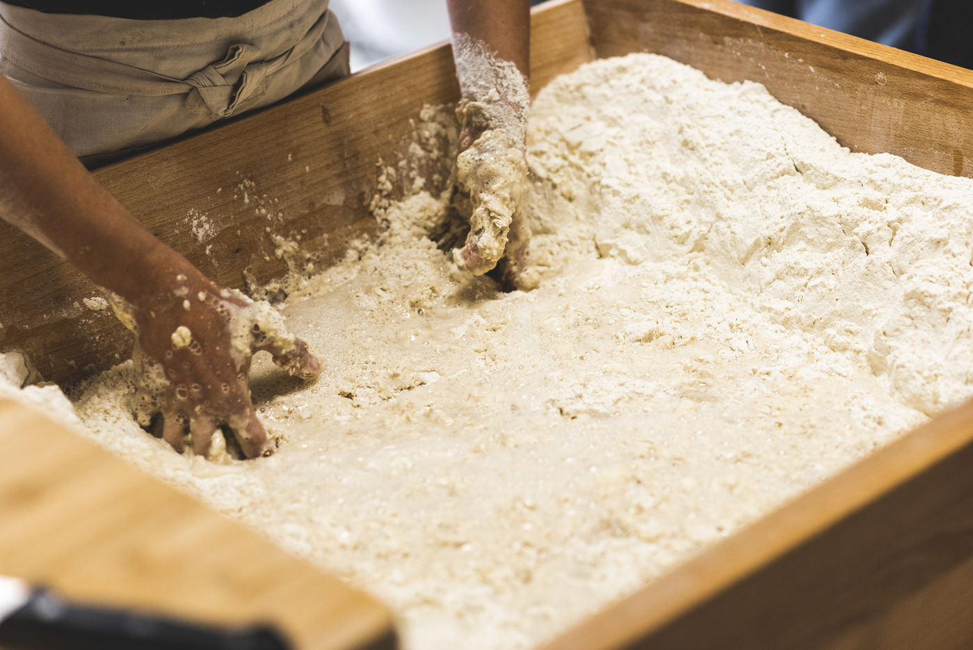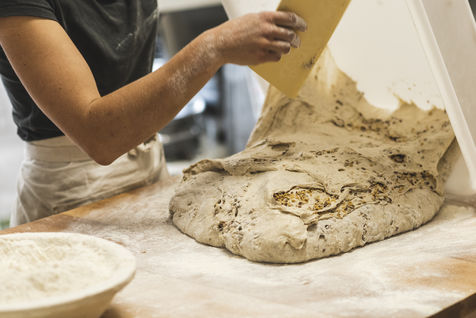 Every morning, sometimes very early, Cecile, the baker of Gréolières, follows a milimetre baking schedule. Mixing water and flour, all organic of course, the dough that will come out of the oven must first follow a long process of mixing and kneading, Cecile performs these operations in a Petrin made by her companion.
