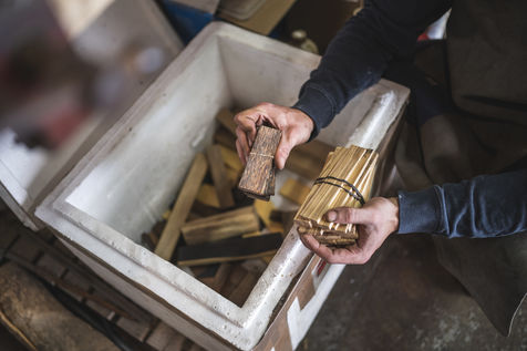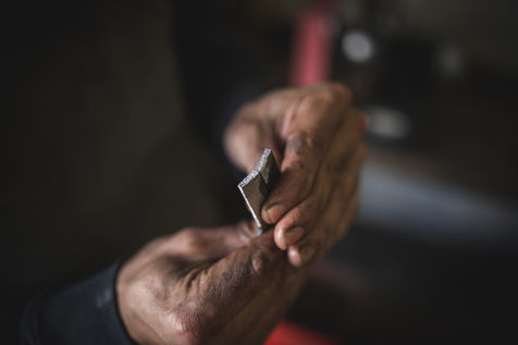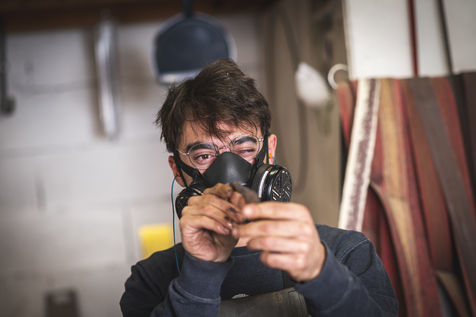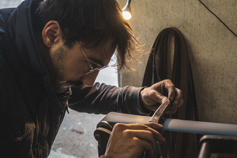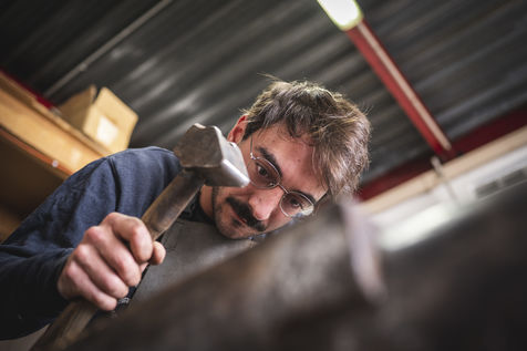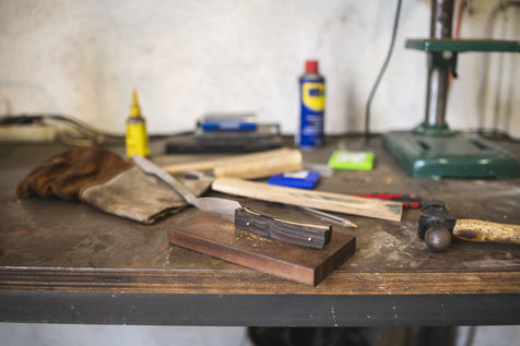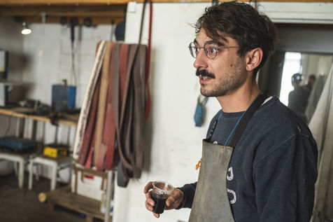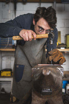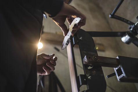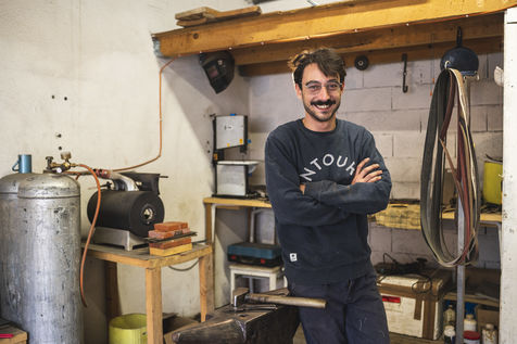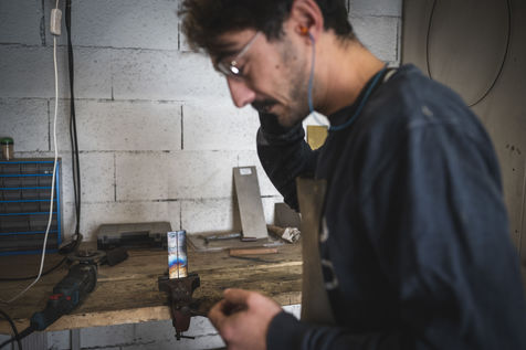 France, Biot, 2022-10-11. Reportage with Florian Gaillard, cutlery maker in his workshop located in Biot, in the south of France. After years spent in business consulting, Florian decided to reconvert to the craft and more particularly to cutlery.