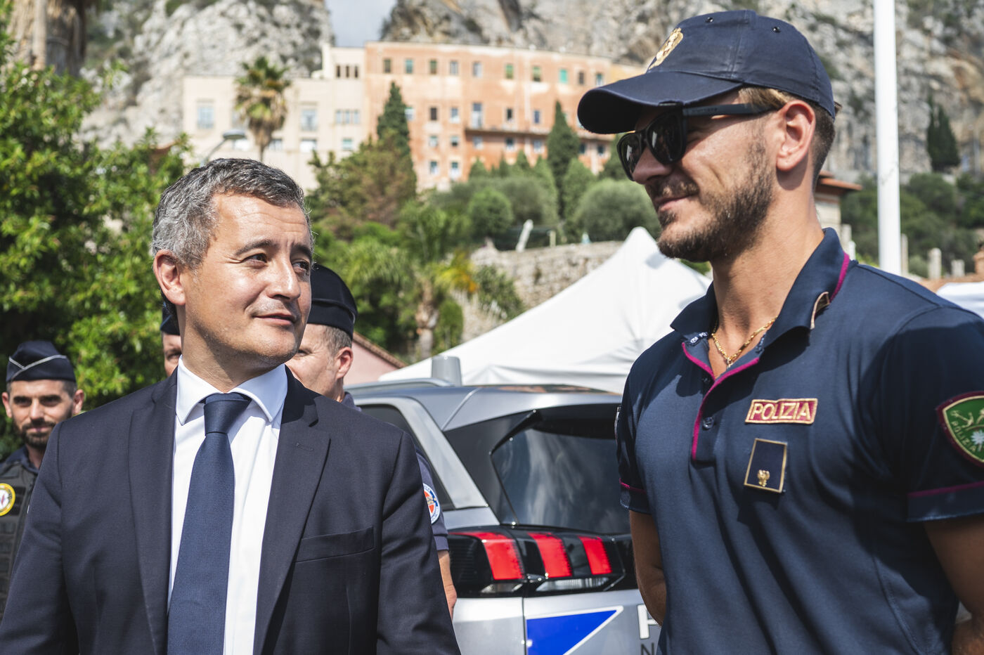 Déplacement de Mr Gérald DARMANIN, ministre de l'intérieur et de l'outre-mer, à Menton le 12 septembre 2023.