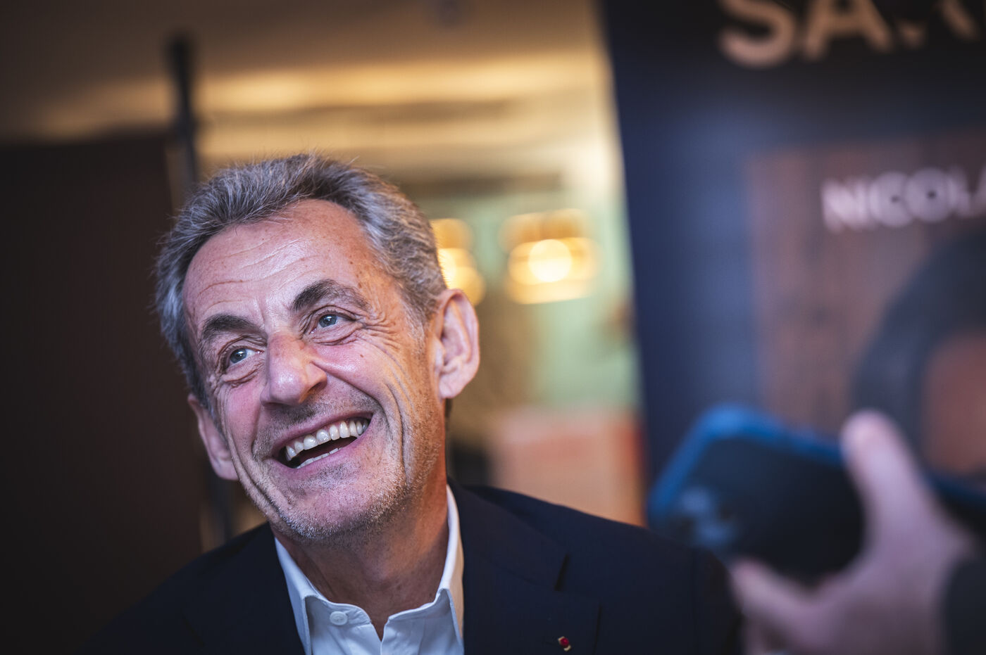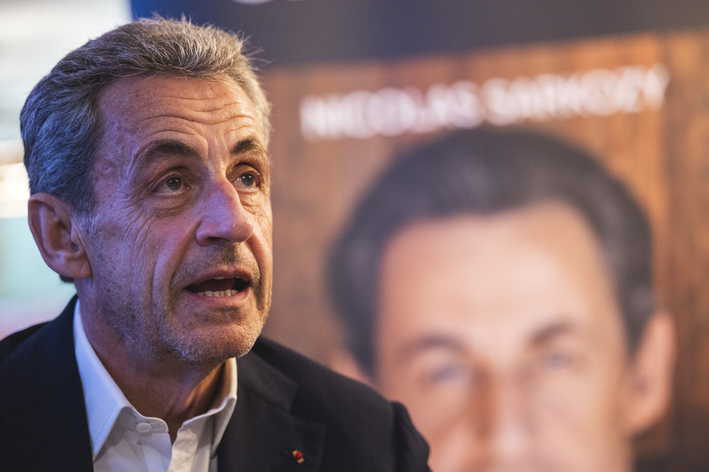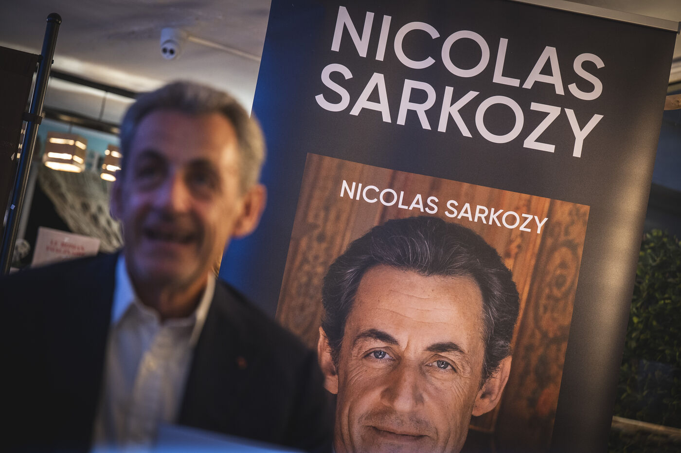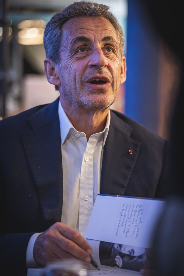 Former President Nicolas Sarkozy at a book signing for his latest book, in Cannes, on November 2, 2023.