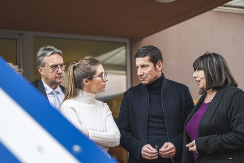 FRANCE, Cannes, December 15, 2023. The French Minister for Solidarity and Families, Aurore BERGE, visits the Mayor of Cannes, Davis LISNARD.