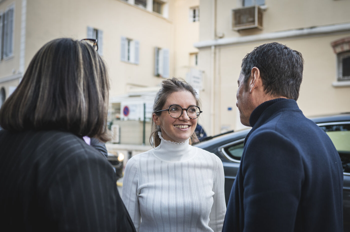 Déplacement de la ministre des solidarités et des Familles, Aurore Bergé, à Cannes le 15 décembre 2023