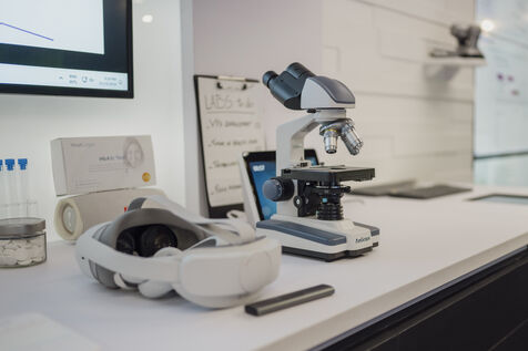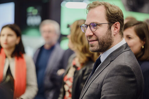 Antoine Armand Ministre français de l'Economie, des Finances et de l'Industrie lors d'une visite du laboratoire d'Accenture, société d'innovation basée à Sophia Antipolis, dans le sud de la France le 15 novembre 2024.