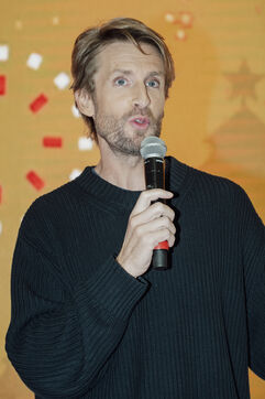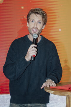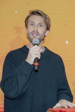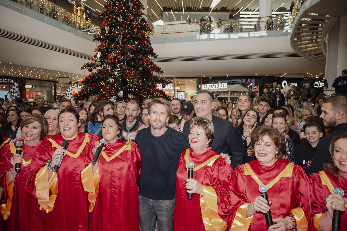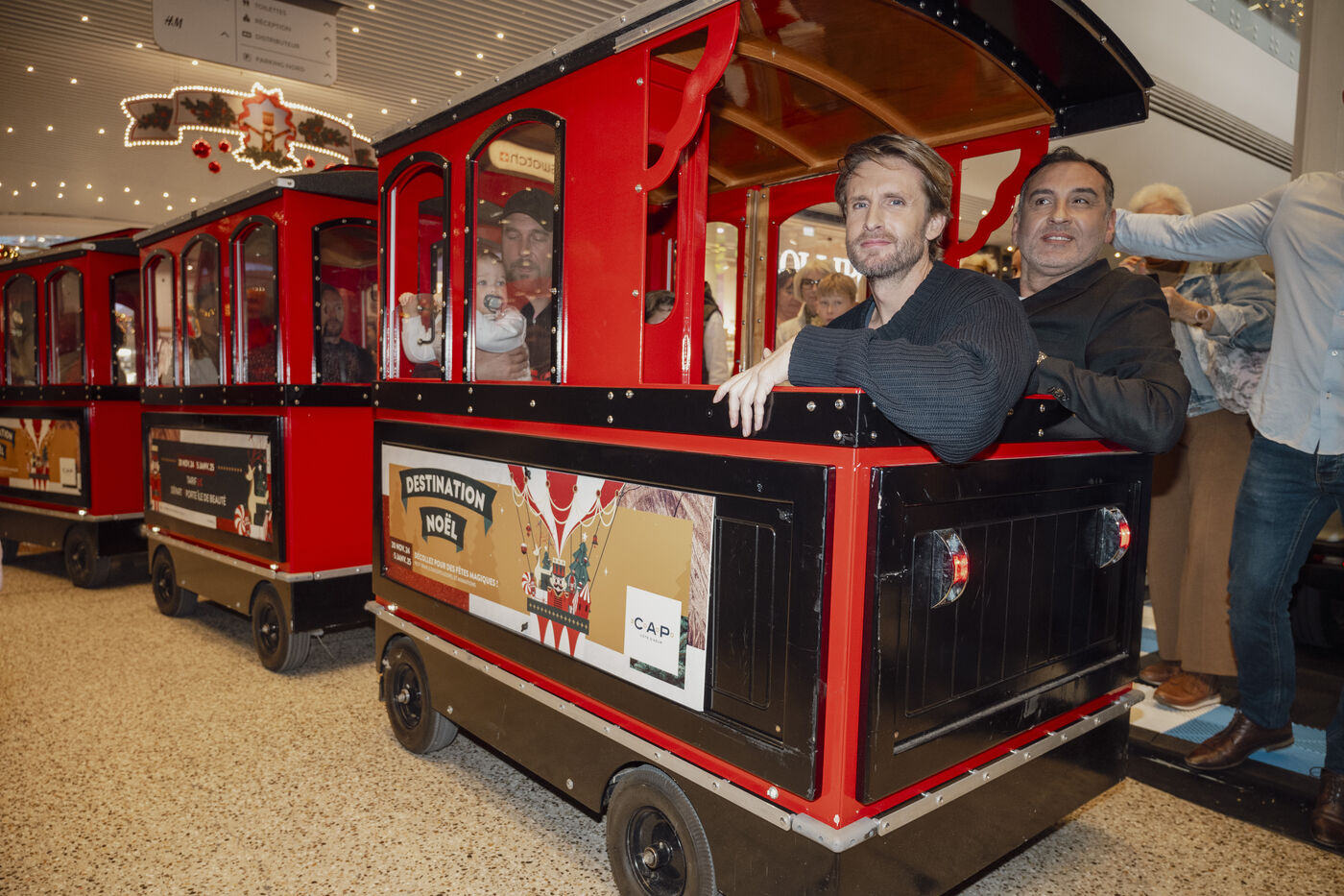 French actor Philippe Lacheau and Frédéric Llorca, director of Cap 3000, at the launch of the Christmas festivities at the CAP 3000 shopping center, based in Saint Laurent du Var, in the Alpes Maritimes.