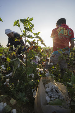 Afin de préserver la qualité des fibres, la récolte se fait principalement à la main. Hommes, femmes, enfants se retrouvent dès l'aube pour commencer la récolte qui durera jusqu'en fin de matinée où l'on pesera les sacs.