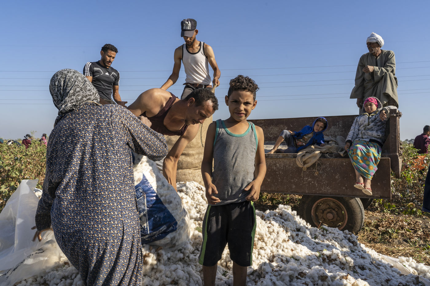La récolte du coton à Fayoum, en Egypte