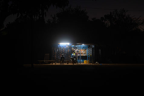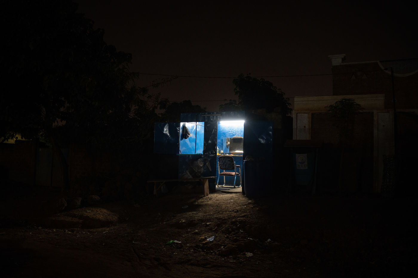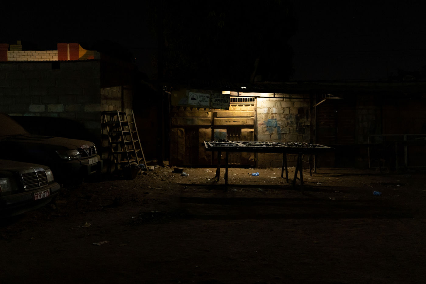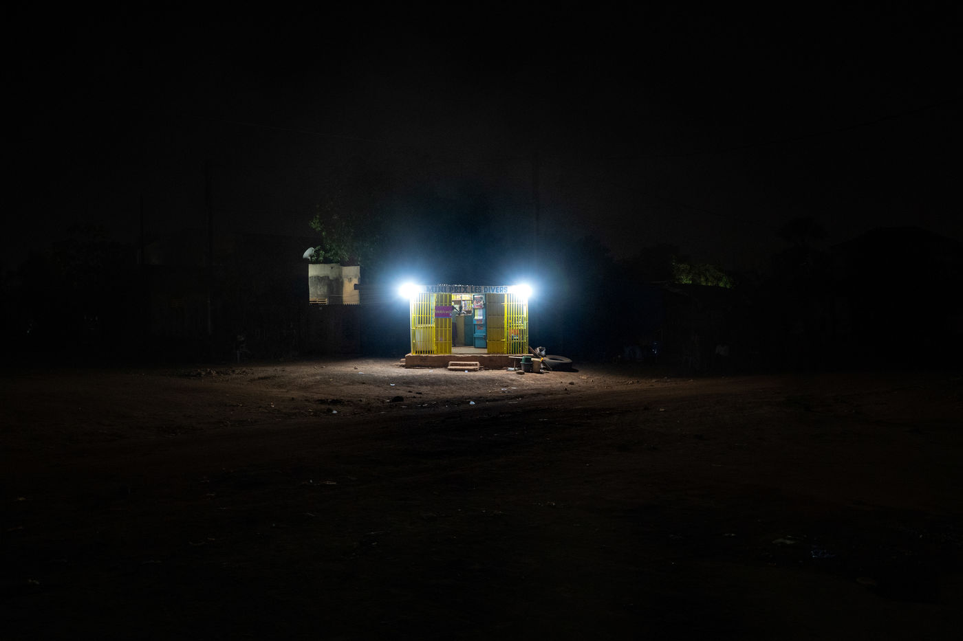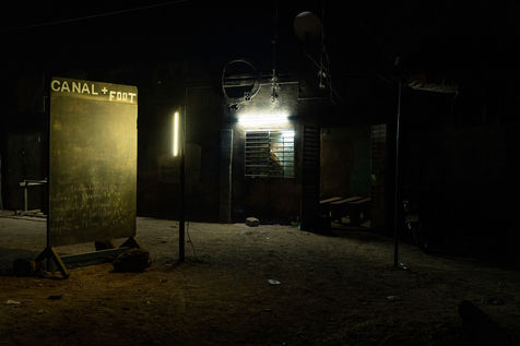 When I arrived in Burkina Faso, it was the first time I had set foot in West Africa, without really knowing what to expect. And from the moment I arrived, from the first night I spent in Ouagadougou, I was fascinated by the nocturnal environment. The district where I am staying, Gounghin, is almost completely in darkness because there is no public lighting. Only the headlights of the cars, the lights of the few shops and bushes here and there, sometimes a small fire in the middle of the street where rubbish is being burnt, make it possible to distinguish people, what is happening just next door or a little further away. Everywhere around me strange, mysterious pictures appear. Life is revealed in fleeting snatches, the different light sources instinctively leading the eye to scan the scene, going from one light to another. Looking for what is hidden, scrutinizing. Various feelings permeate me. Because the atmosphere that is created from what the night reveals to us, lets us see, can just as easily bring us a feeling of tension, electricity, or even calm.