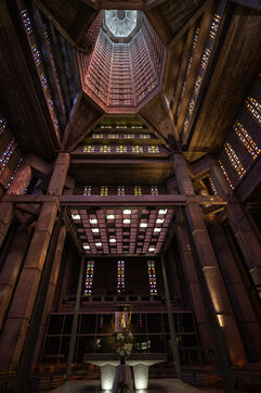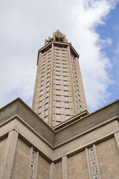 At 107 metres high, the Lantern Tower became the city s highest point, as sailors could see it for up to 60km on a clear day. But it was above all its construction that made it a landmark in the revival of modern architecture and sacred art. Built entirely of reinforced concrete, it rests on 71 piles planted in the marshy ground.