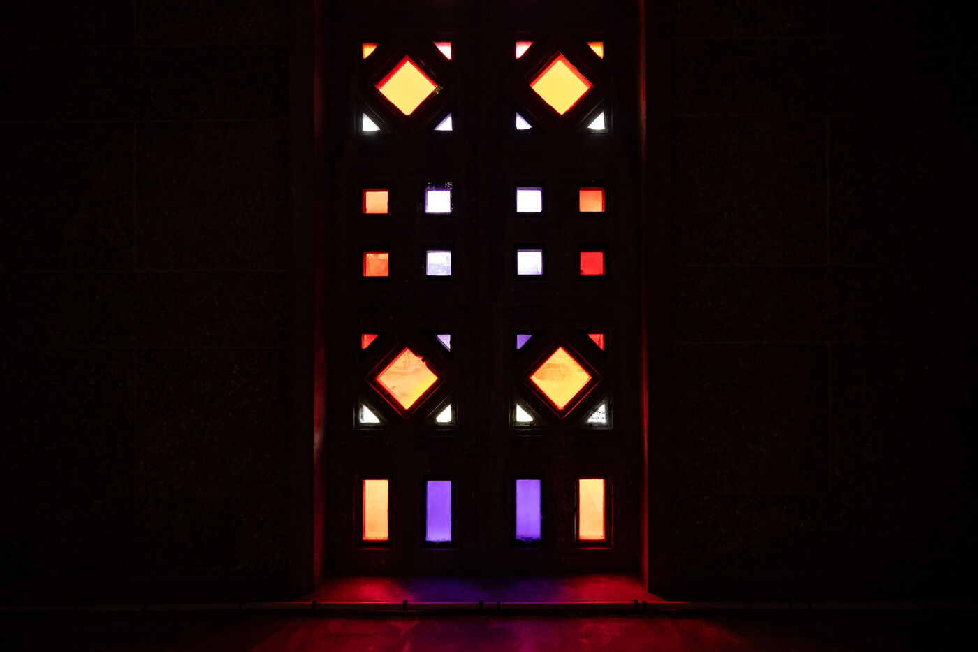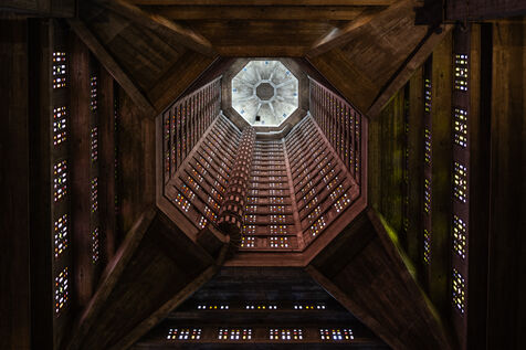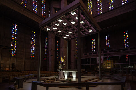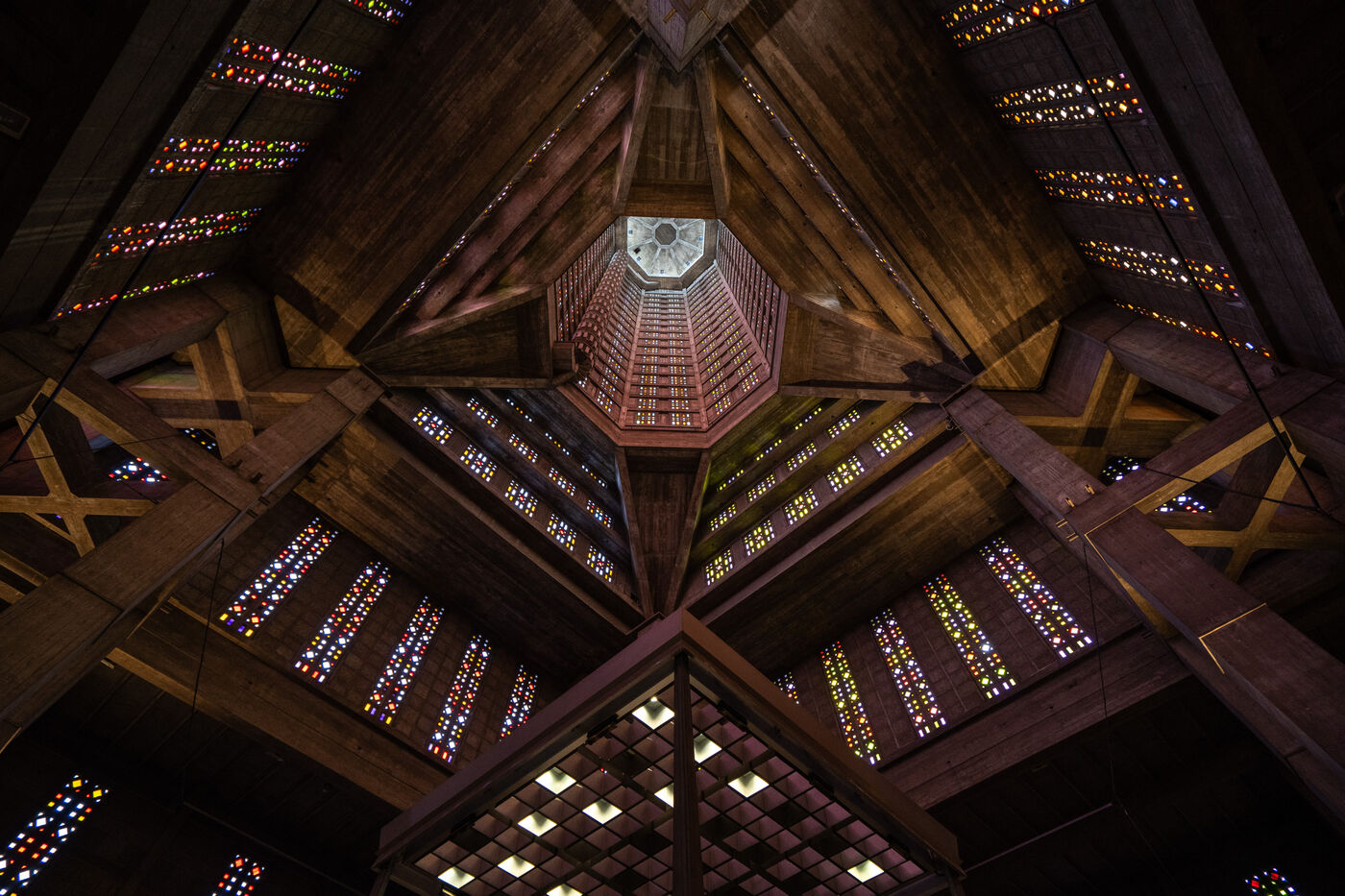 The stained glass windows (some 12,568 pieces) were created - and mouth-blown - by the artist Maguerite Hure herself. Deliberately eschewing figurative religious representations, the artist chose to use colour alone, giving the building a luminous and aesthetic unity that is inseparable from its spiritual atmosphere.