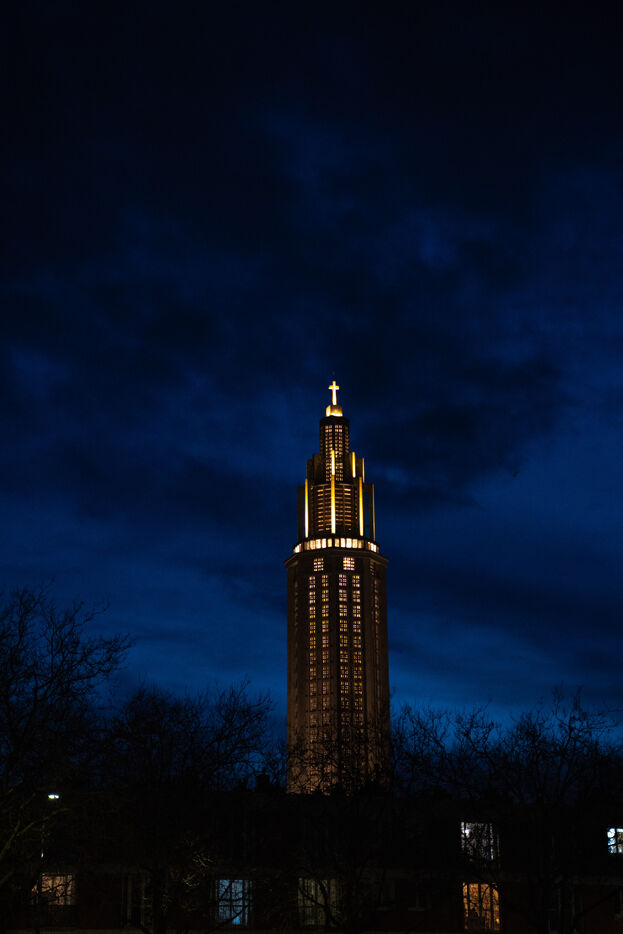 Le phare de la cite oceane. Tel pourrait etre le surnom de l eglise Saint Jospeh, au Havre.