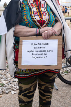 A gathering followed by a silent march to denounce the ongoing genocide in Gaza and call for an end to the war took place on the beach at Le Havre on Saturday 31 May 2025.