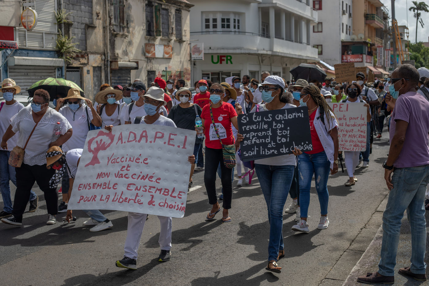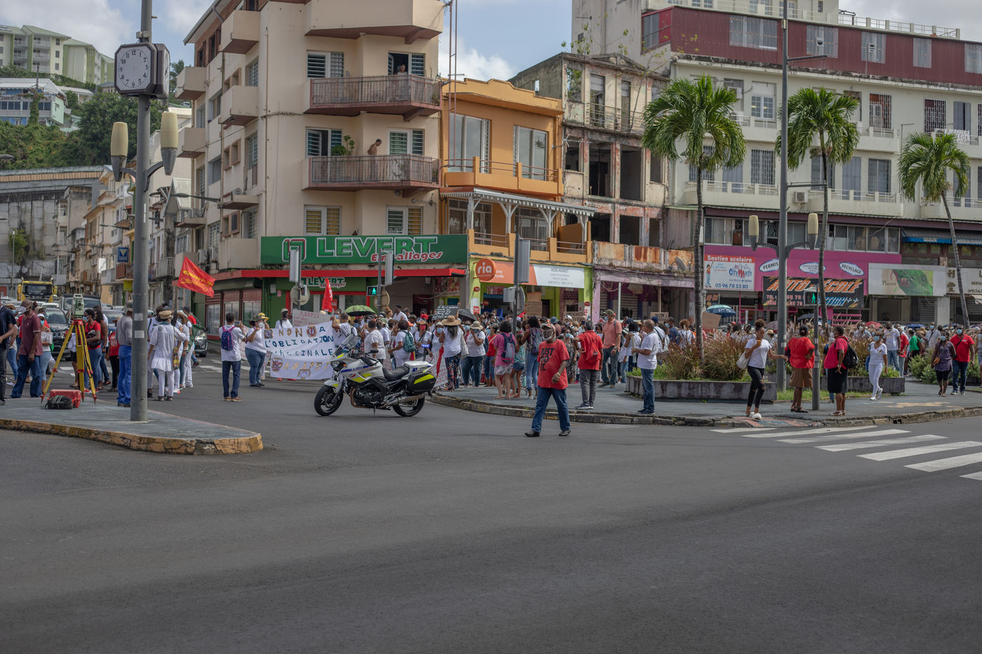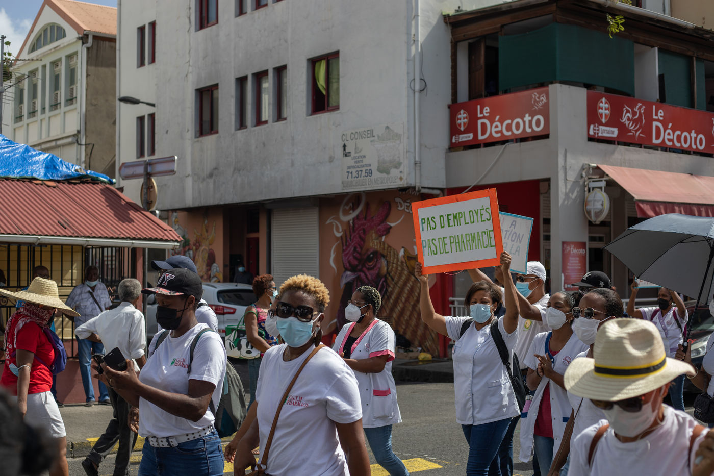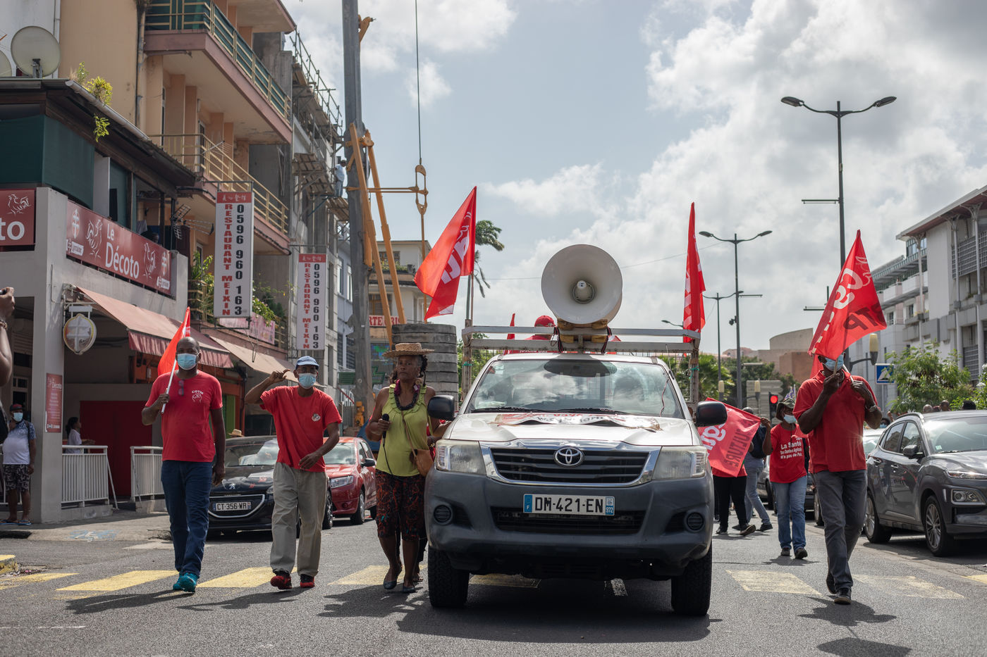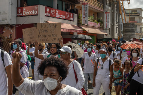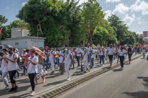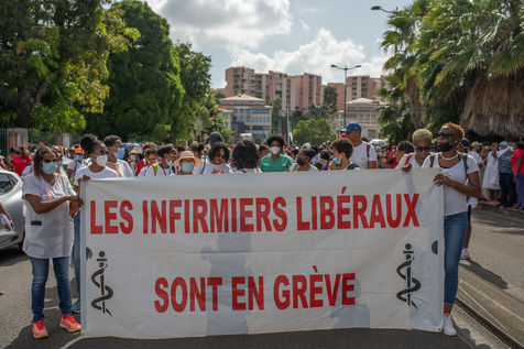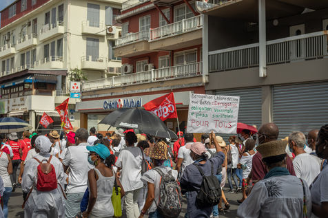 L'intersyndicale de la santé a appelé à une grève générale à partir du 25 octobre, date à laquelle plus de mille personnes, majoritairement des professionnels de la santé, se sont rassemblées pour marcher dans les rues de Fort-de-France en protestation au pass sanitaire et l?obligation vaccinale.