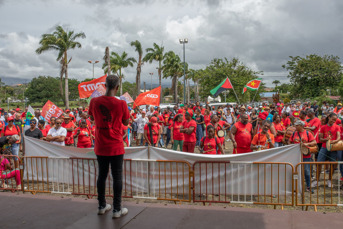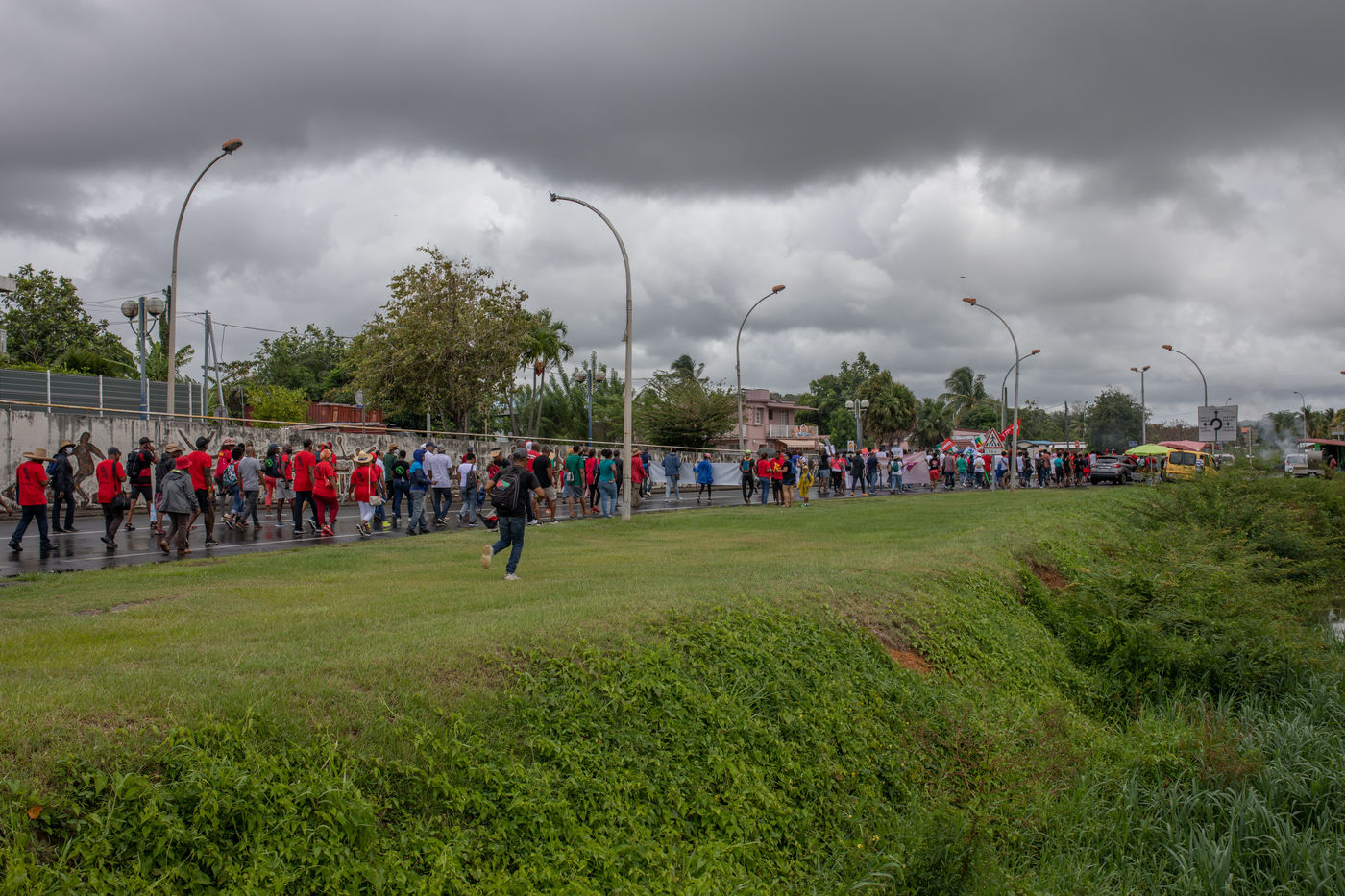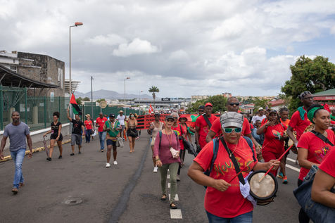 The gathering, which was intended to be "unitary" by the organizers, was given in a symbolic place this Saturday, May 28: place du Neg Mawon in Lamentin (center of the island). Scheduled to start at 9 am, the march through the streets of the city finally began around 10:30 am, despite the frequent showers, to end at the municipal stadium Georges Gratiant of Lamentin.