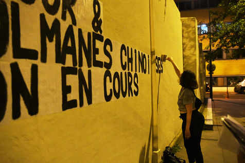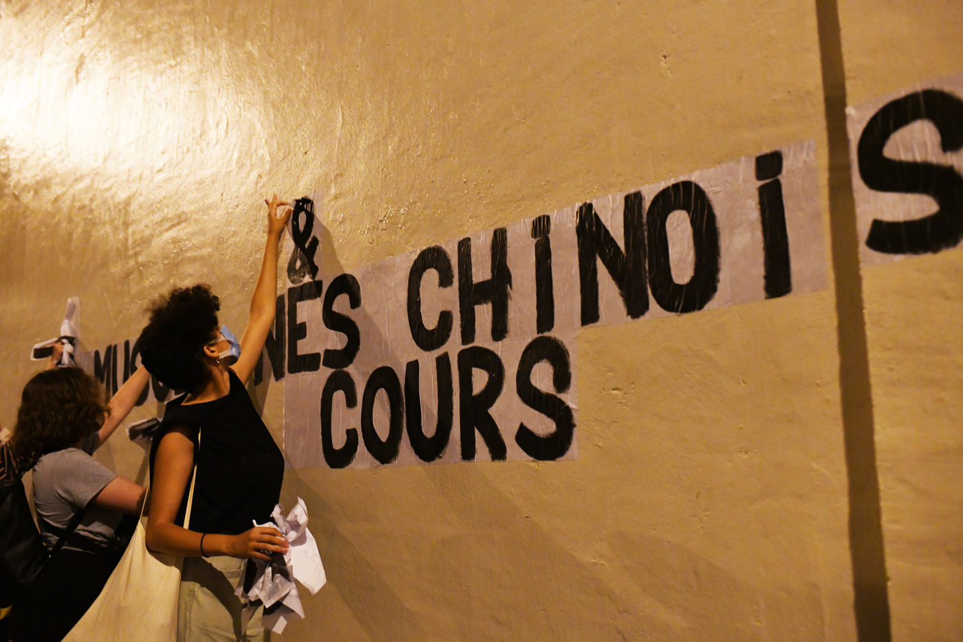 During the night, the members of the Collages Féminicides Paris group displayed messages on the walls of big companies such as Samsung and Amazon denouncing the exploitation of the Uyghur people in their Chinese factories, as well as the genocide currently taking place in the country.