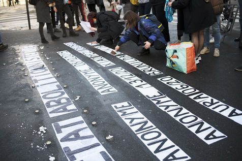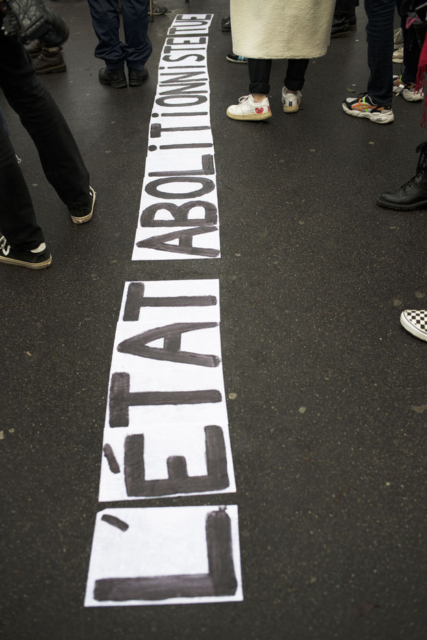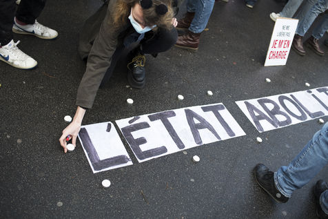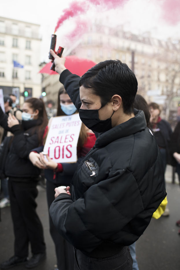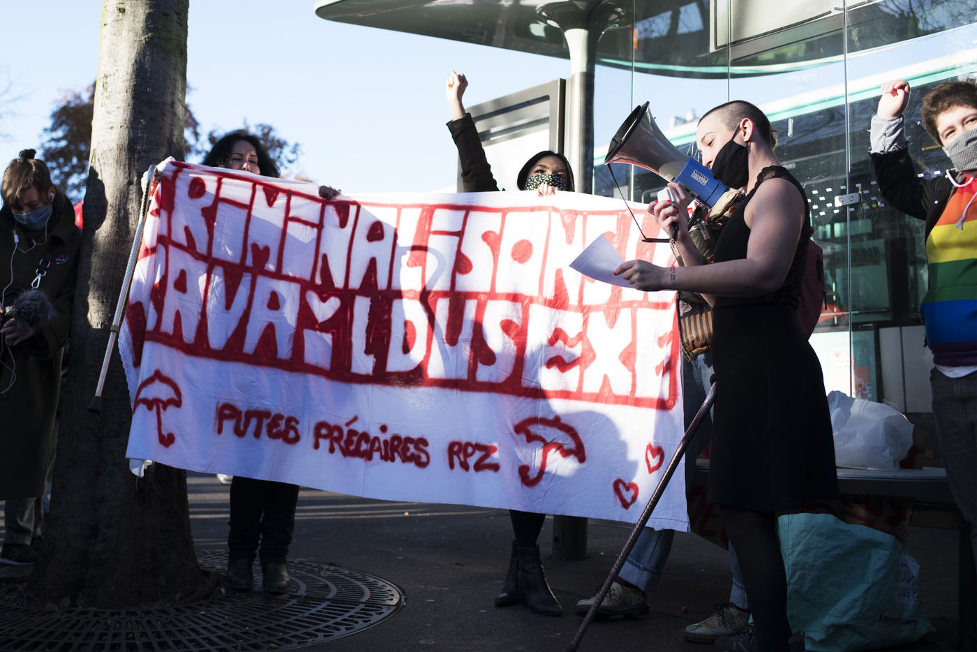 Rassemblement pour la journée mondiale de lutte contre les violences faites aux travailleur-euses du sexe à Paris. Place Pigalle, le 17 décembre 2020.